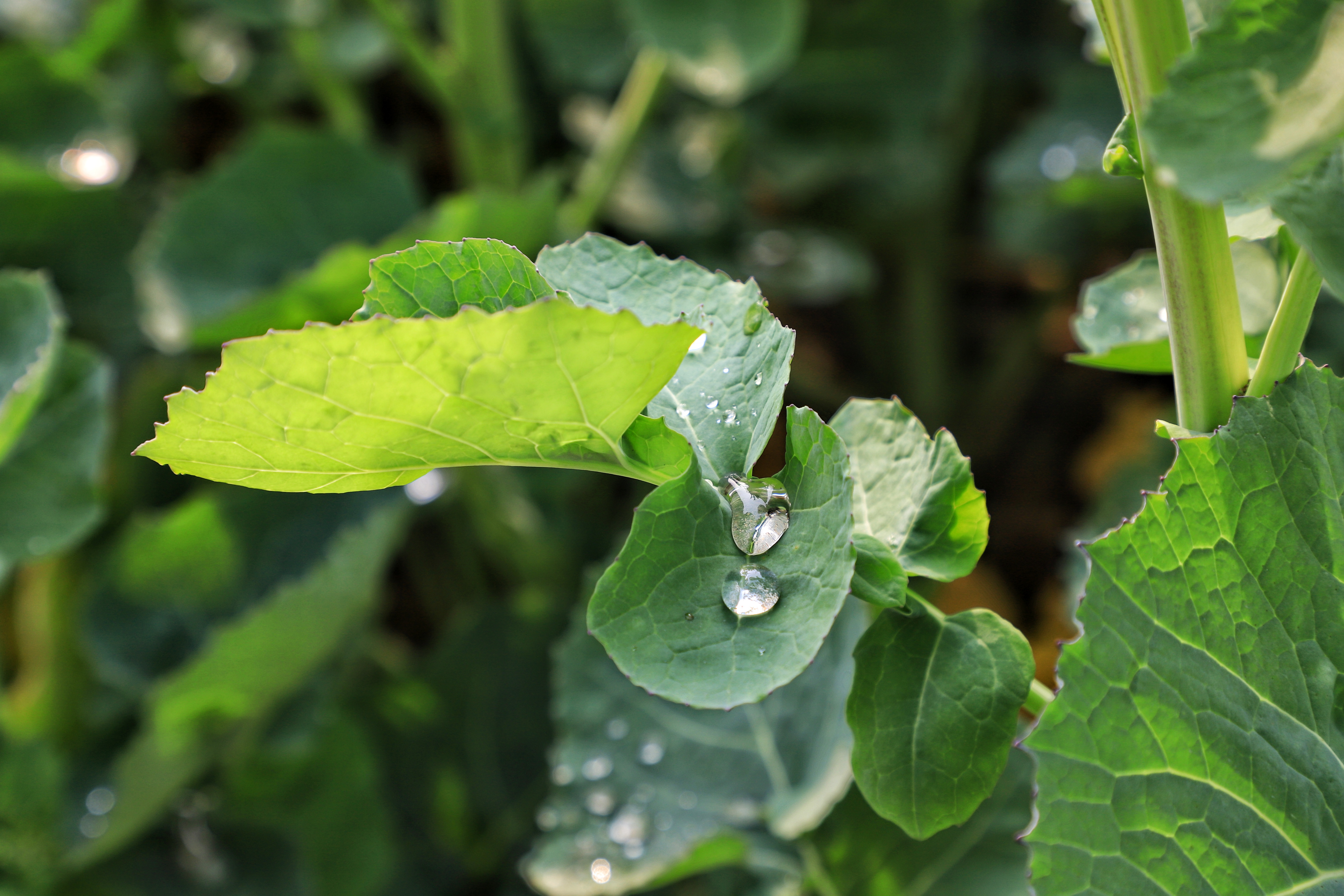 菜叶上晶莹剔透的露珠,亮晶晶的,很漂亮~
