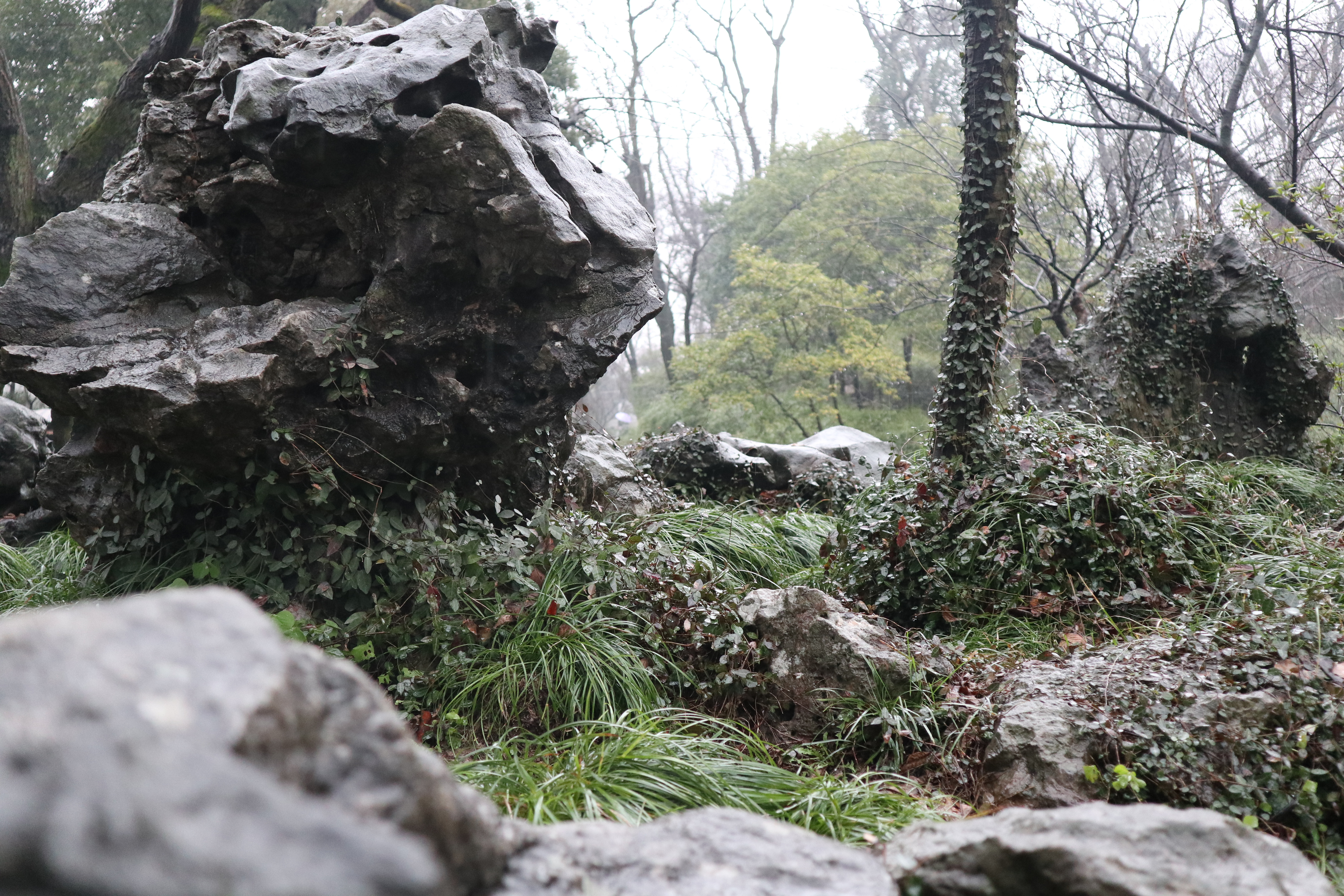 前面小阜上面就是沧浪亭,亭子 石柱 浑厚