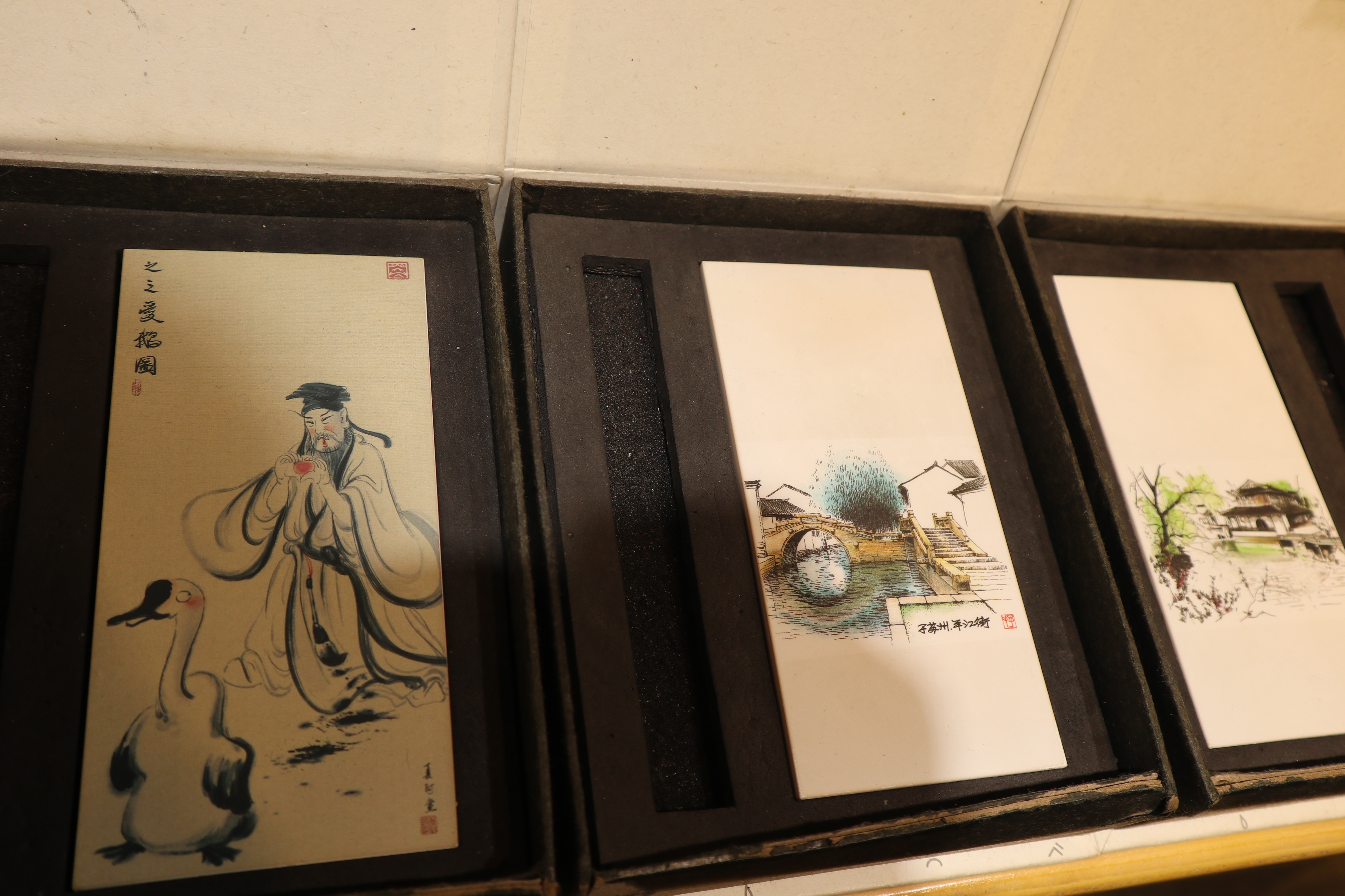 一个专门做扇子的商店 真不知道这是怎么绣上去的