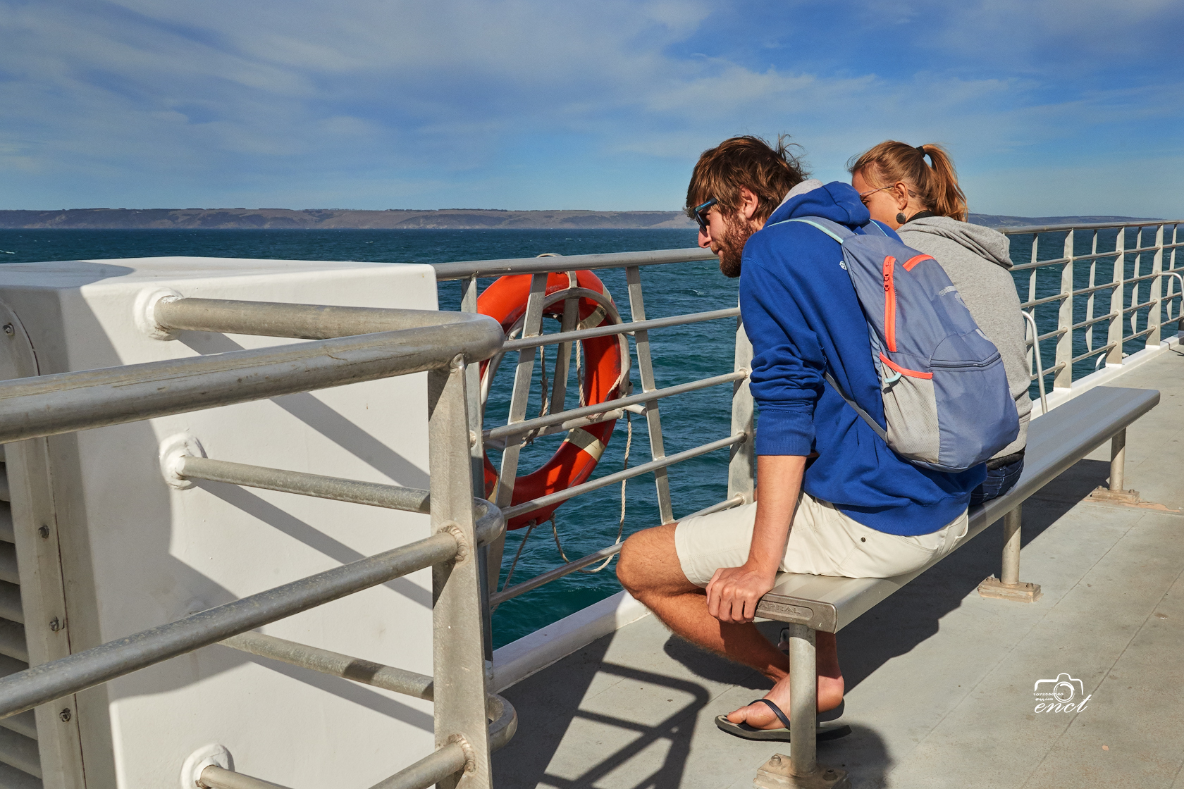 我们告别了阿村的朋友,驾车沿A15、B23公路来到巴克斯泰海峡菲尔半岛尖端处的希臣径,登上海上渡轮前往袋鼠岛