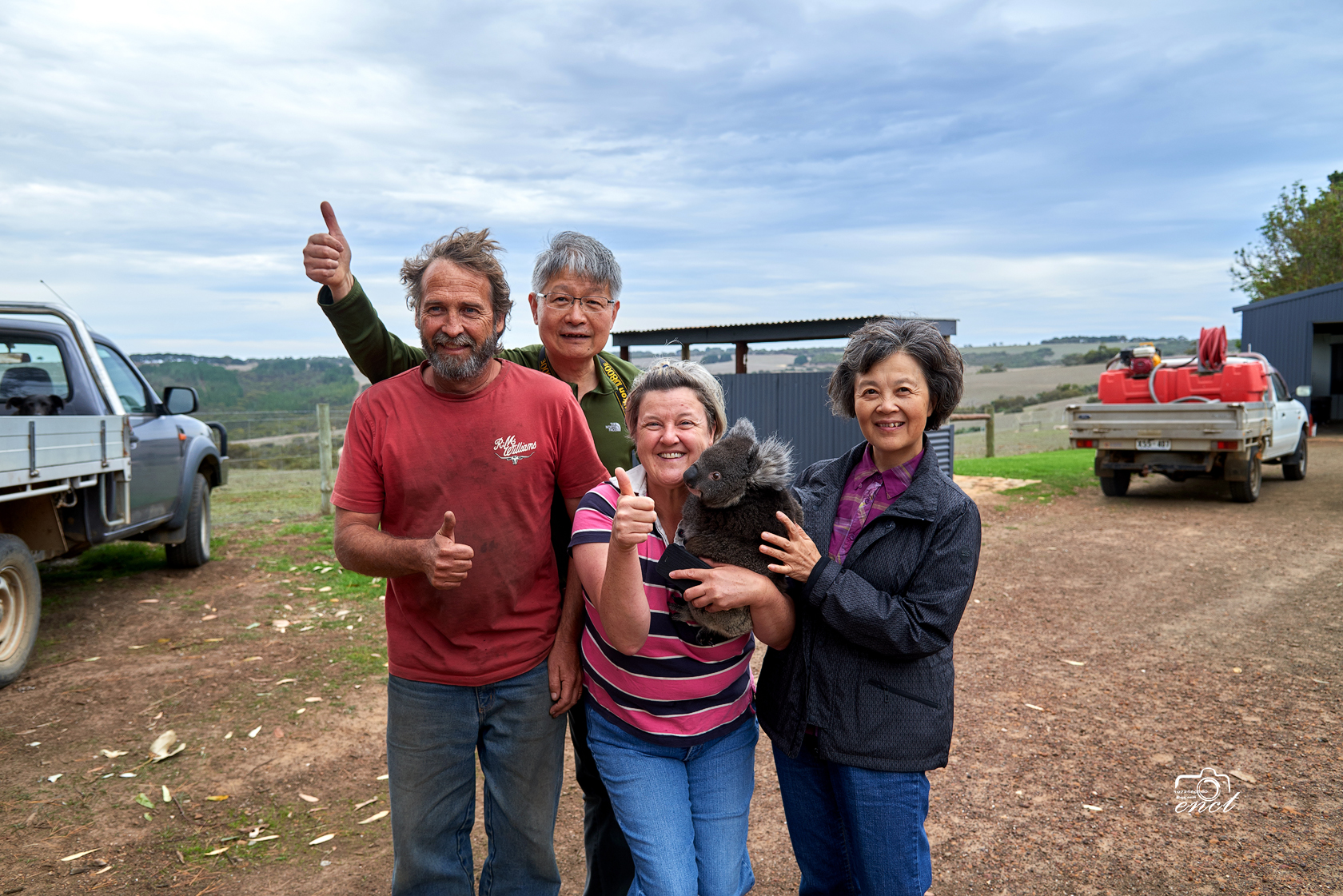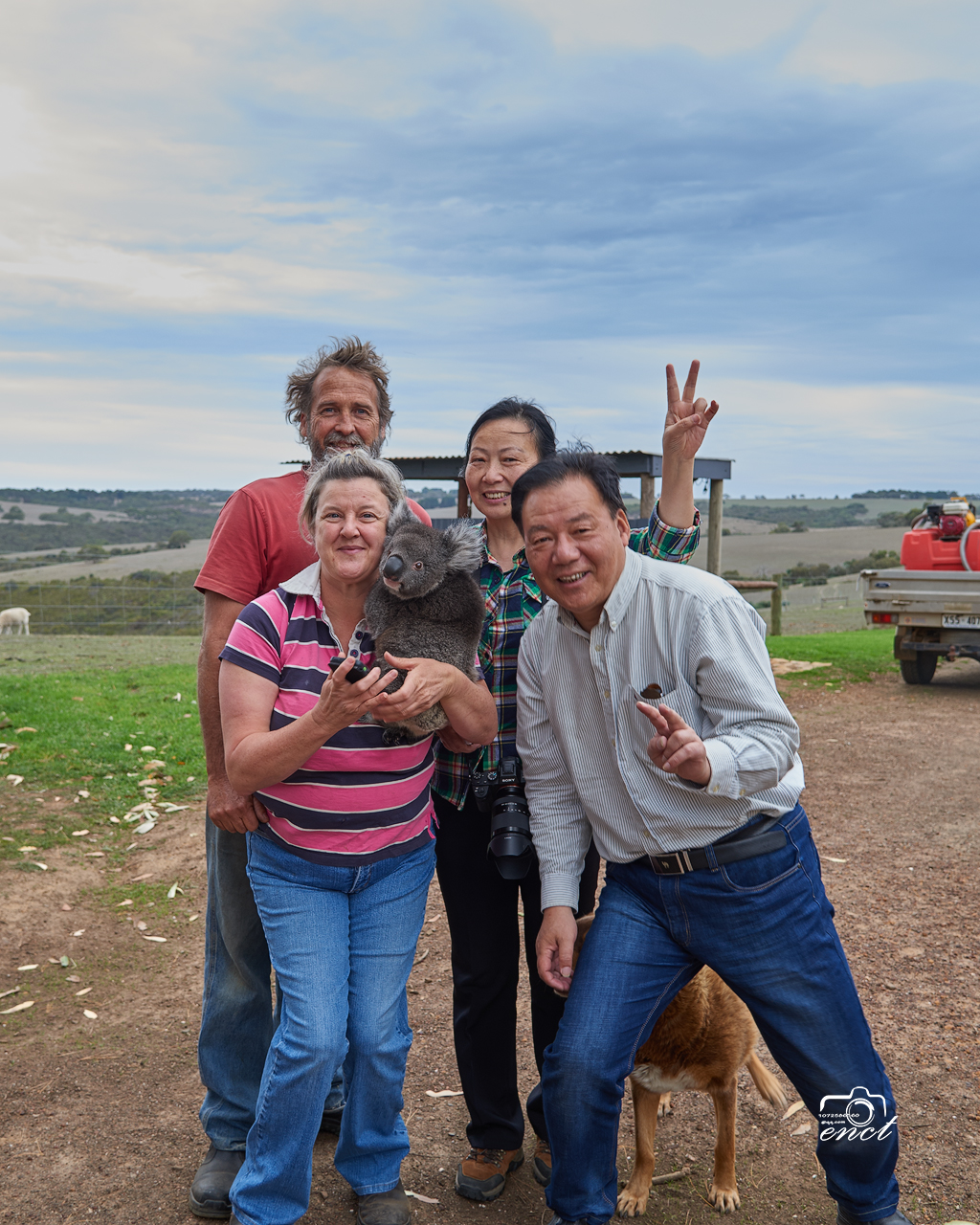 在袋鼠岛最激动的、值得回忆的奇遇事,是我们竟然受邀请访问了一家私人农场,与农场主人中文对外文(如同鸡同鸭说)聊的甚欢,还抱着主人家的考拉拍照,同农场主夫妇一家一家合影,恋恋不舍!故事是这样发生的: