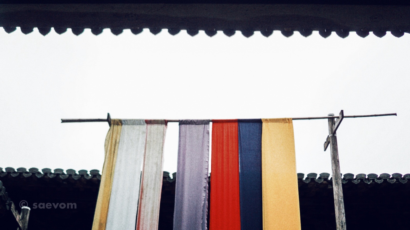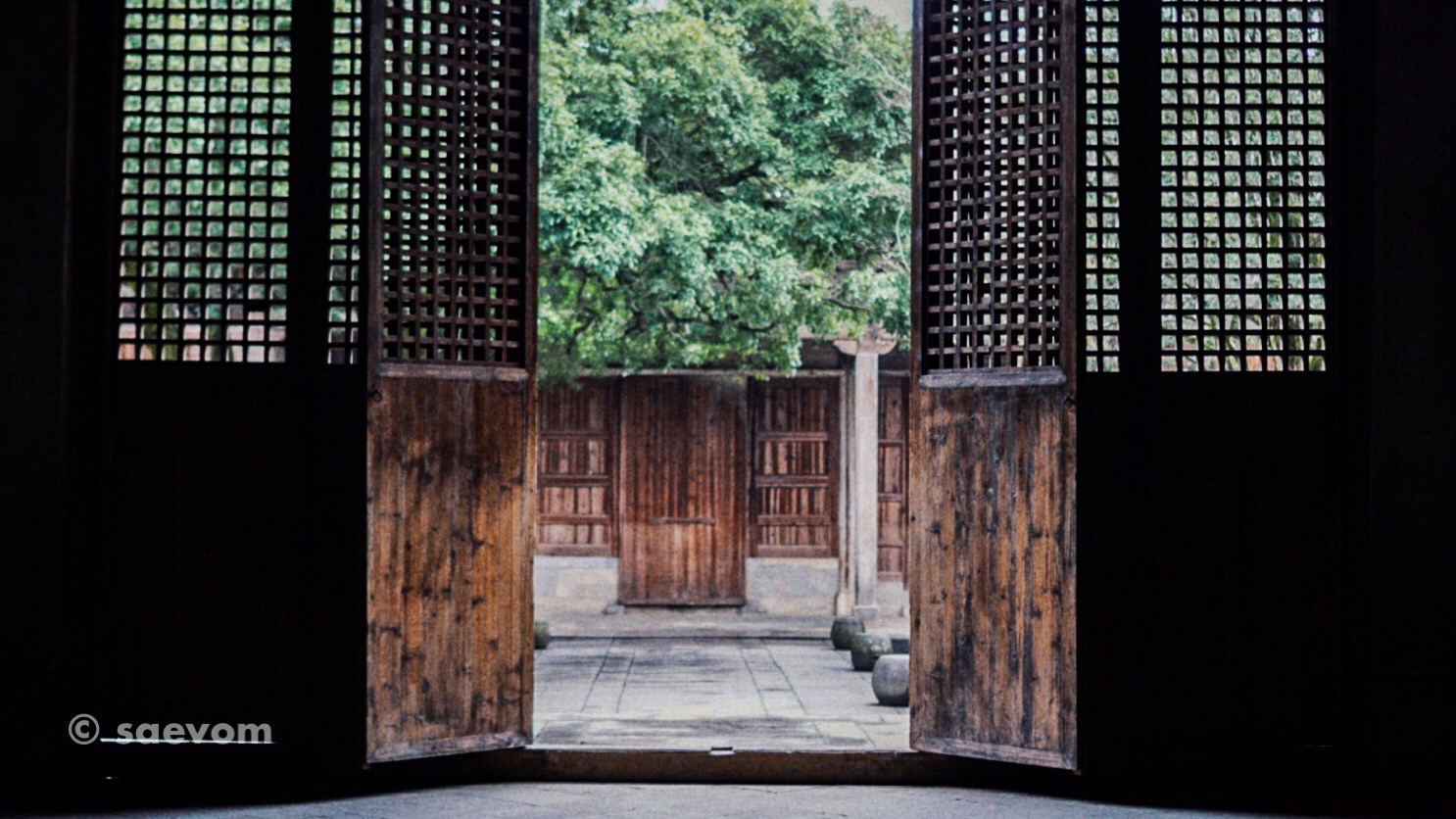 1989年,张艺谋和巩俐在叶氏宗祠,耗时7个月拍摄了《菊豆》,后来该片也获得了法国戛纳电影节最高奖-金熊奖,如今,祠堂内还留有当时一架高高的晒布台,还有几件叫不出名字来的织染工具,一切都静止在时空里,染坊的布匹,粗质的纹理也都掩不住岁月的痕迹,悬挂着的染布飘飘舞动,仿佛在像着我们诉说着什么……