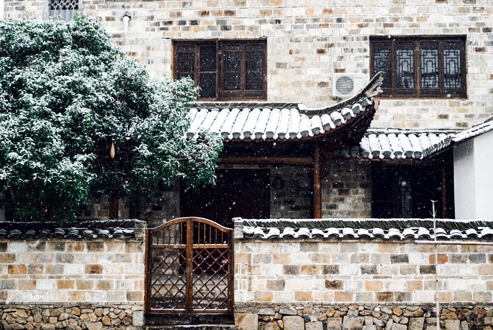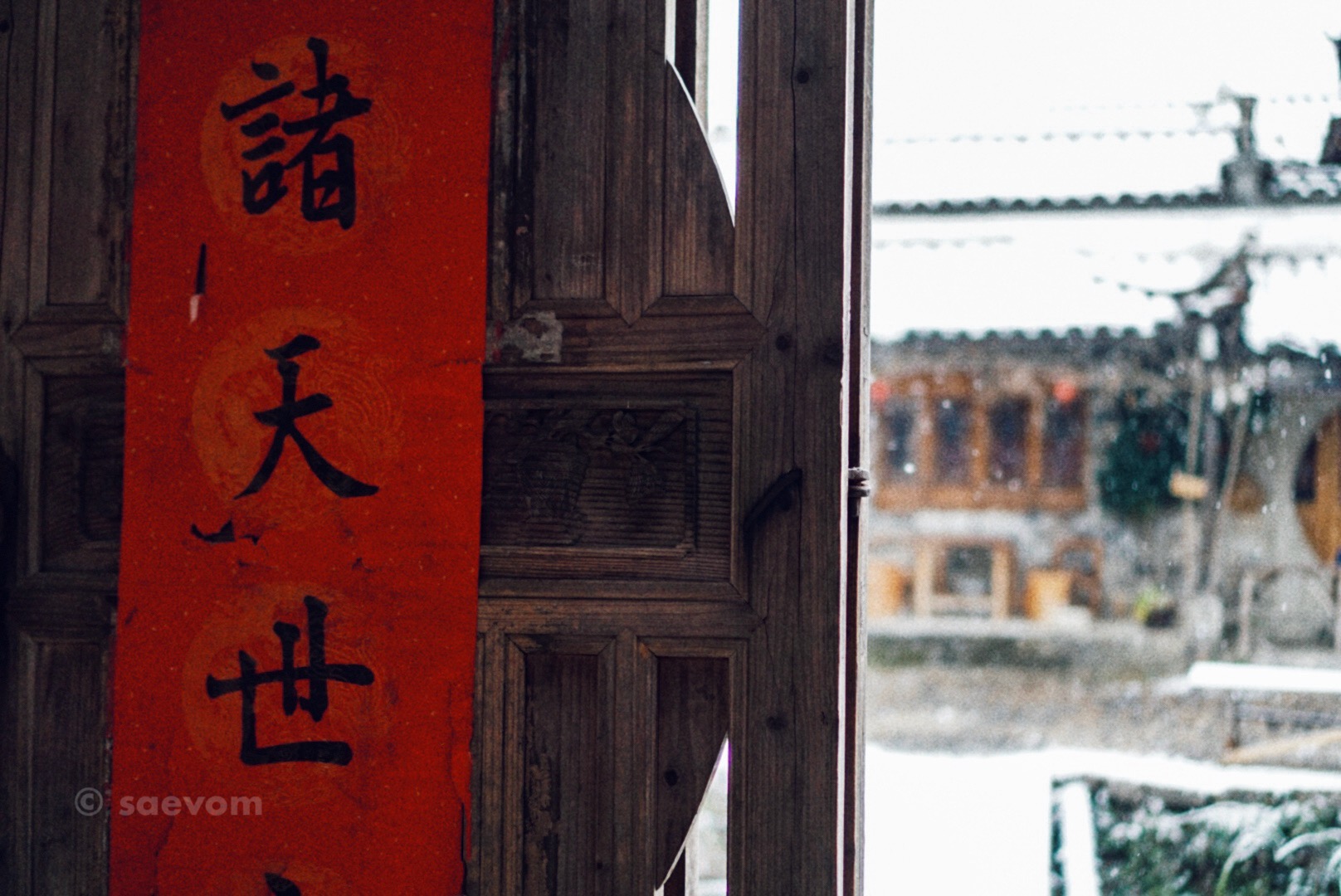偶然走进一个祠堂,雪从天井里落下,眼前刹那间好似看到一位古代美人,穿着红裙在翩翩起舞,思绪被耳边孩子的欢笑声拉回了现实,跟小朋友握握手,给她拍了个照,这个年纪总对事物充满了好奇心,希望你要快乐长大!