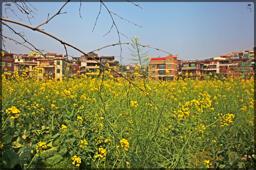富饶的乡村高楼一栋挨着一栋,油菜花就在村子中间。