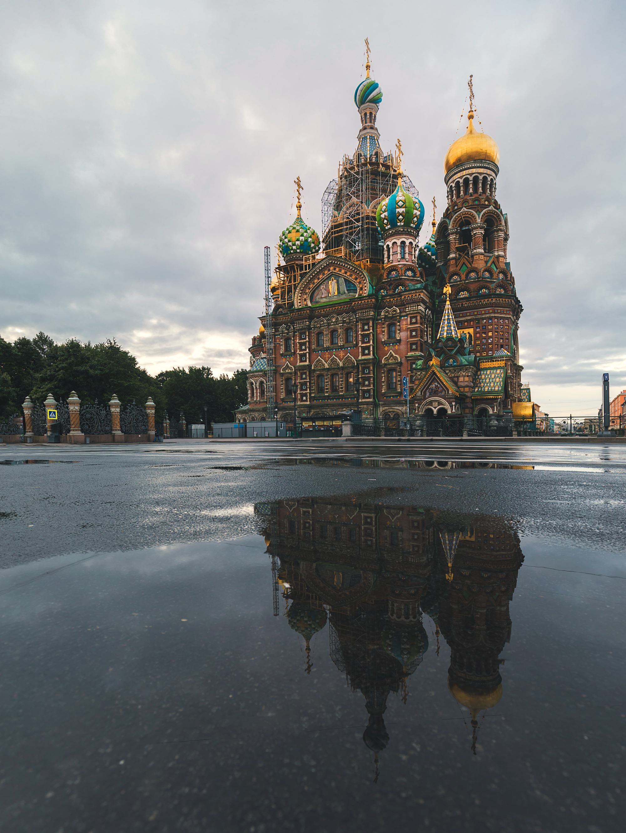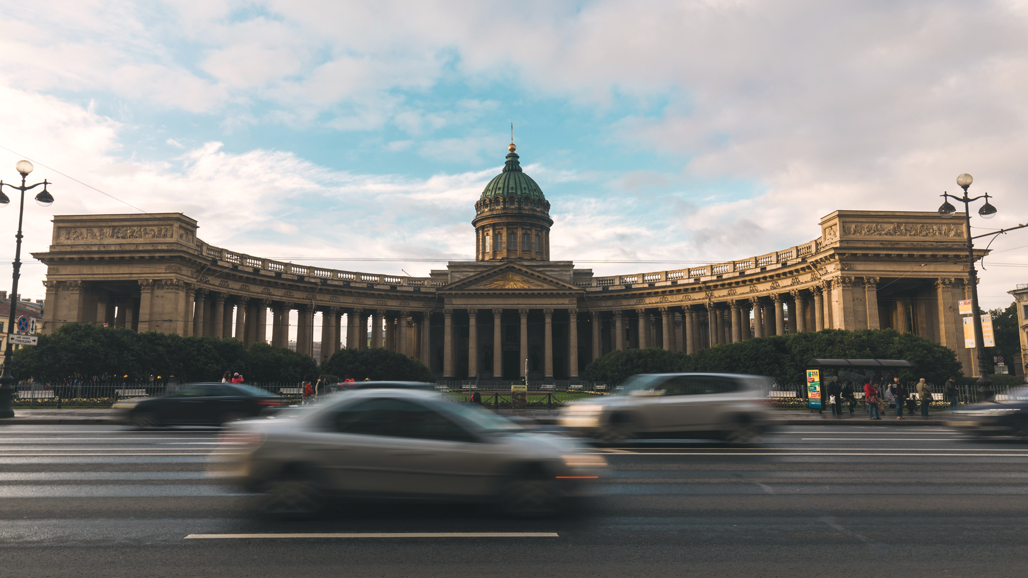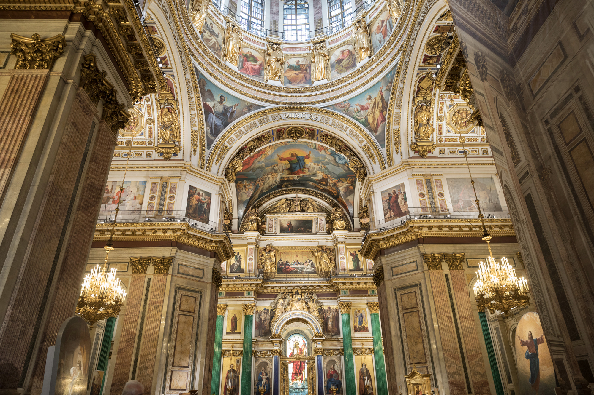 圣彼得堡最大的教堂,也是俄罗斯最大的教堂之一,始建于1801年,如今仍在使用。这座教堂是为了存放俄罗斯东正教圣物——喀山圣母像而建的。这个圣母像曾有很多传说,据说在俄法战争和二战俄军进攻期间曾显灵,圣母像流下泪水并托梦,之后的严寒粉碎的敌人的进攻。1813年,曾借圣母显灵战胜法军的俄军统帅库图佐夫埋葬在了这座教堂中,墓边从法军缴获的战旗和头盔彪炳着这位将军的赫赫战功。喀山教堂的半圆形圆柱长廊气势恢宏,但其实面朝涅瓦大街一侧的半圆柱长廊并不是这座教堂的正门,当时是为了考虑美观而添加了这么一个走廊,但现在也都从这个门进入。由于这座东正教教堂仍在使用,所以参观时请注意东正教礼仪,女性进入要记得披戴头巾,男士也不能穿着短裤进入。