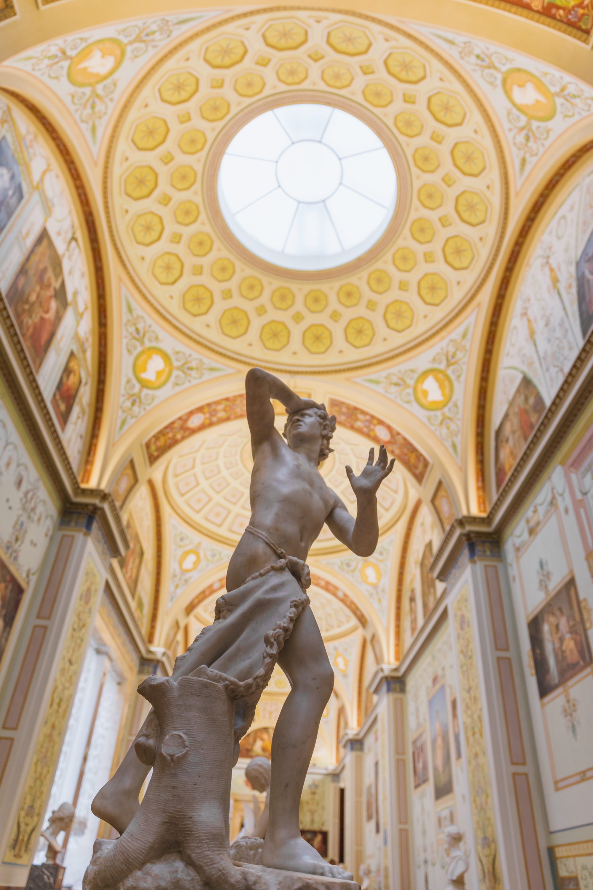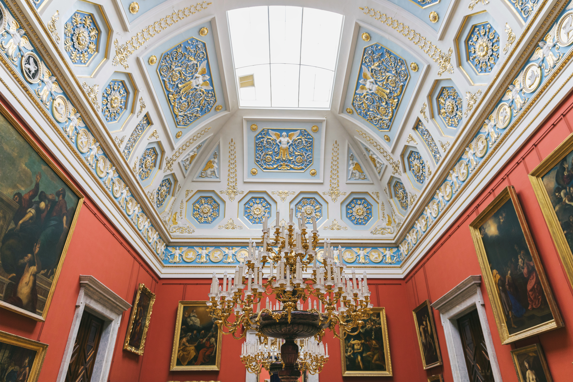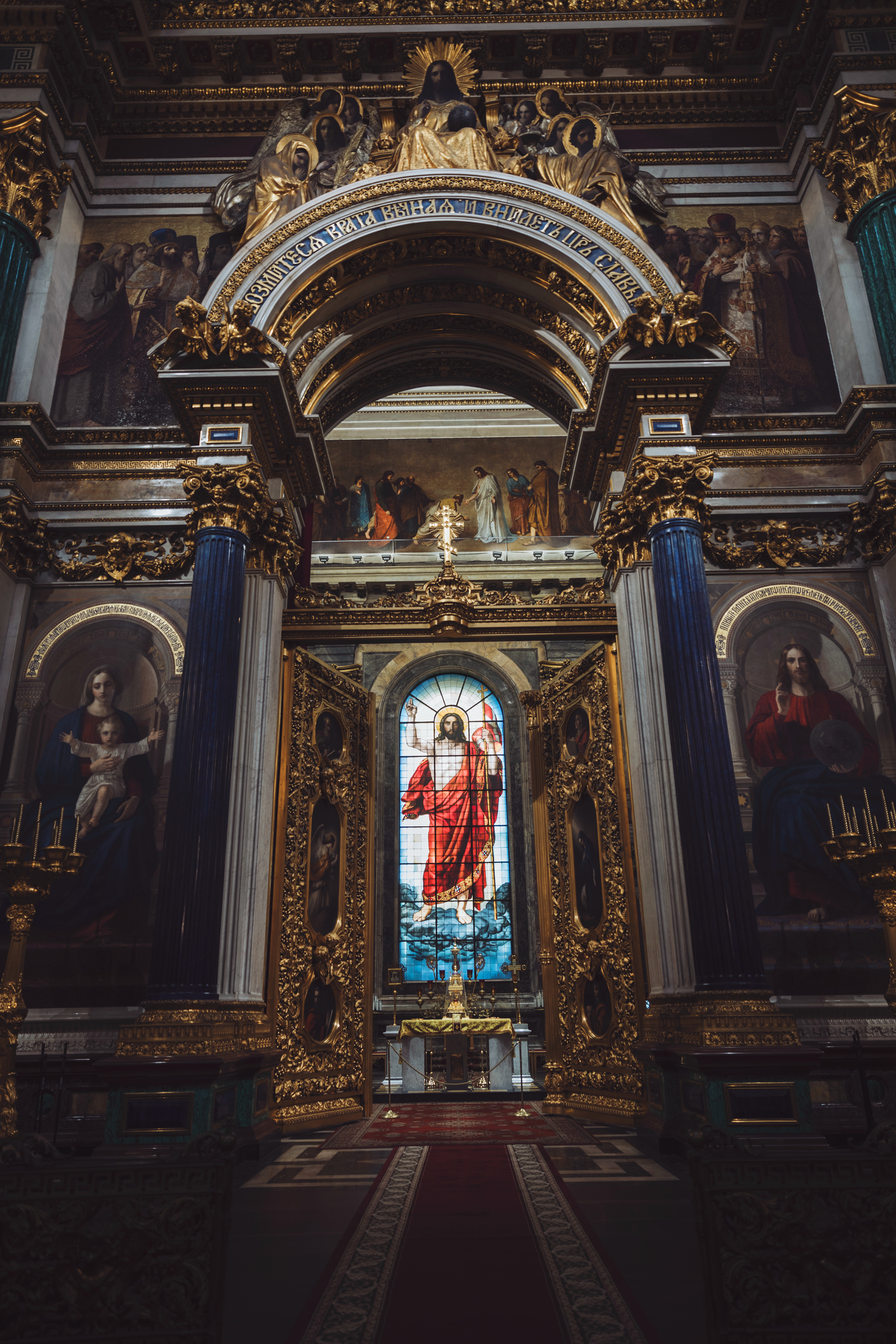 圣彼得堡最大的教堂,也是俄罗斯最大的教堂之一,始建于1801年,如今仍在使用。这座教堂是为了存放俄罗斯东正教圣物——喀山圣母像而建的。这个圣母像曾有很多传说,据说在俄法战争和二战俄军进攻期间曾显灵,圣母像流下泪水并托梦,之后的严寒粉碎的敌人的进攻。1813年,曾借圣母显灵战胜法军的俄军统帅库图佐夫埋葬在了这座教堂中,墓边从法军缴获的战旗和头盔彪炳着这位将军的赫赫战功。喀山教堂的半圆形圆柱长廊气势恢宏,但其实面朝涅瓦大街一侧的半圆柱长廊并不是这座教堂的正门,当时是为了考虑美观而添加了这么一个走廊,但现在也都从这个门进入。由于这座东正教教堂仍在使用,所以参观时请注意东正教礼仪,女性进入要记得披戴头巾,男士也不能穿着短裤进入。