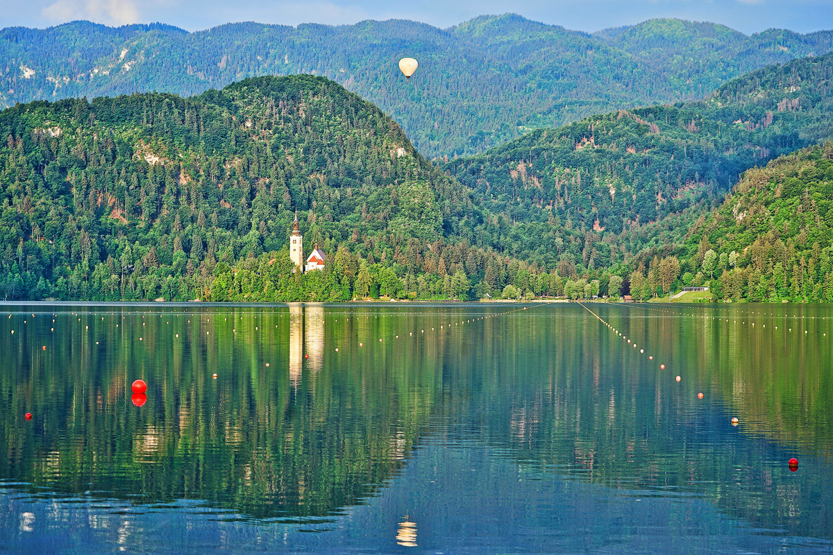 苍翠的 阿尔卑斯山 脉簇拥着 布莱德 湖,一泓碧水,波光潋滟,如果说 布莱德 湖是 阿尔卑斯山 的一只美丽的大眼睛,那么湖心岛就是它的漂亮瞳孔。