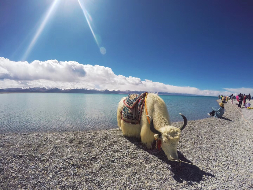 纳木措的美用我才疏学浅的来说就是,只因天上有……敦厚的牦牛,绵延的雪山,湛蓝的湖水,席地坐在湖边,欣赏着这蓝色宝石和纯净雪山,吃着路上十元一个买的牦牛肉饼和青稞饼,人生快哉!
