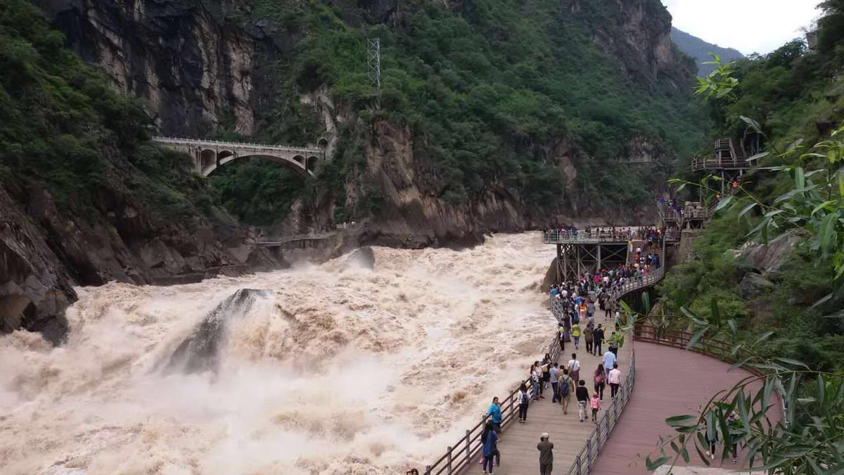 在虎跳峡,江水至上而下翻滚而去,有如猛虎飞跃峡谷一般,给人以气势磅礴的感觉,这也是名字的由来。这里包括上、中、下虎跳峡,一般游览的都是上虎跳,中虎跳风景好,但是路况较差,需要一定的体力。