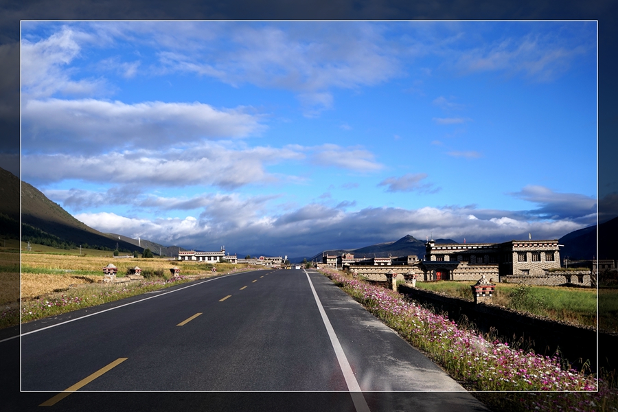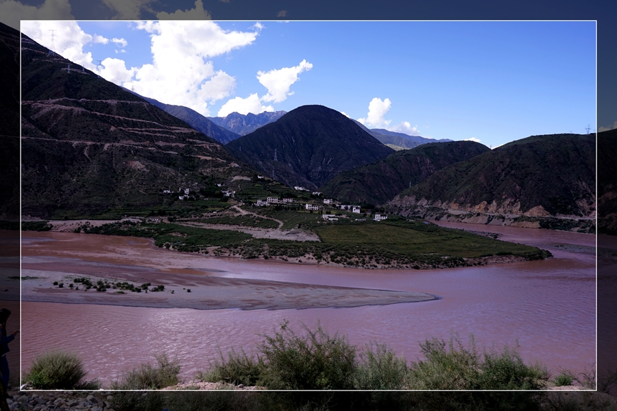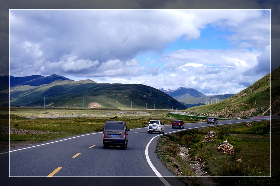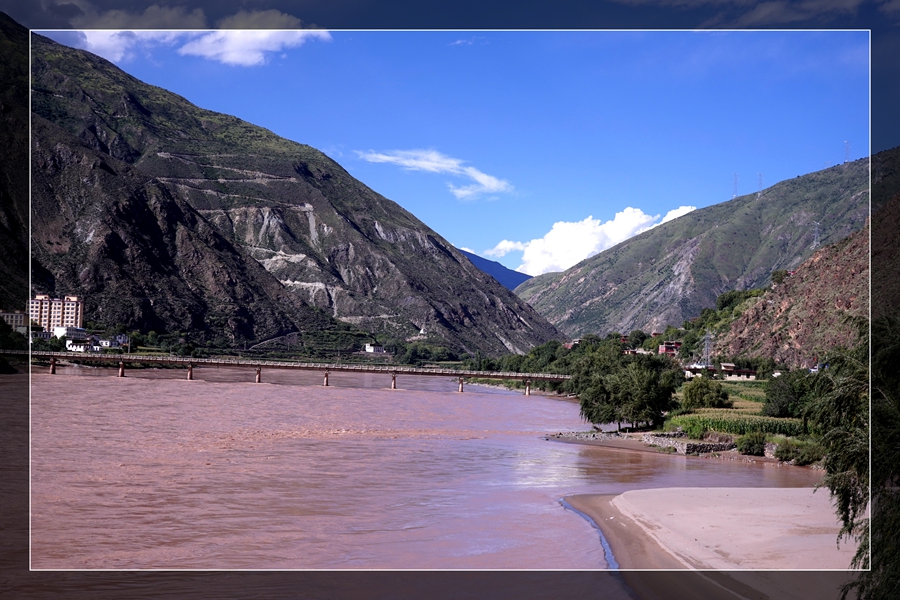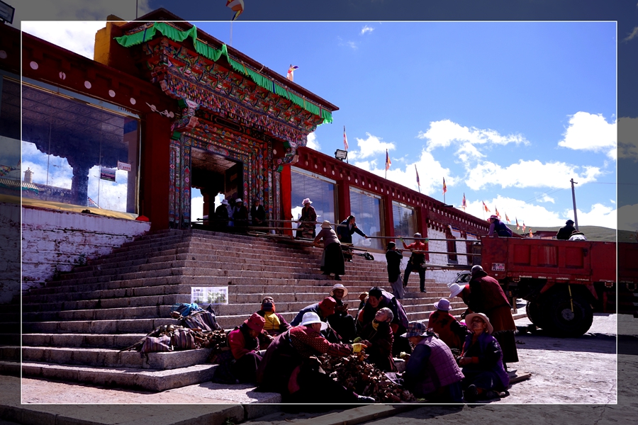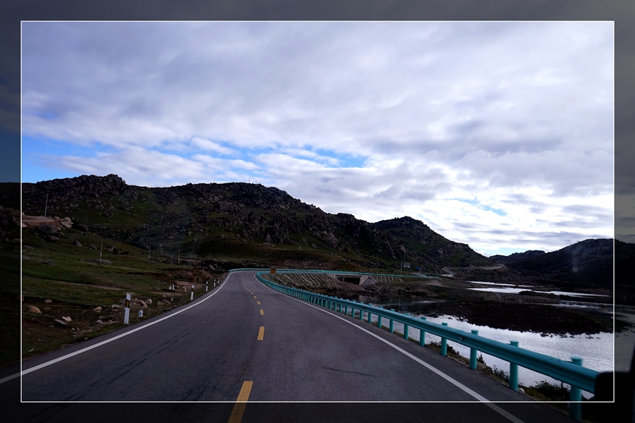 8:30出发,经过桑堆小镇、海子山。来时因天气阴或晚没有好好的欣赏,一早天气好,感觉好美。一路沿S217回到理塘,中午参观康巴地区最大的格鲁派(黄教)寺院-【长青春科尔寺】-寺庙由三世达赖·索南嘉措于公元1580年开光建成,寺庙占地500余亩,寺容僧侣4300多人,常驻800人左右,为康区第一大格鲁派(黄教)寺庙,素有"康南佛教圣地"之称。继续前行来到巴塘,经竹巴龙到达金沙大桥,金沙江水面黄浊,大家下车,从四川地界走向藏界,意寓我们走路去西藏。分别在两边界碑下照像,全体照背影占满了整个桥面,还被当地便衣巡警?骂了一下(16:46)。远远的看到姐妹湖,两湖颜色不一样,一湖湛蓝湛蓝。接下来就是要走一段318线上最难走的公路,去年堒陷的地方,即进入西藏。沿西曲江虽70公里的一段,用时2小时,很多地方只能单行(19:45)。