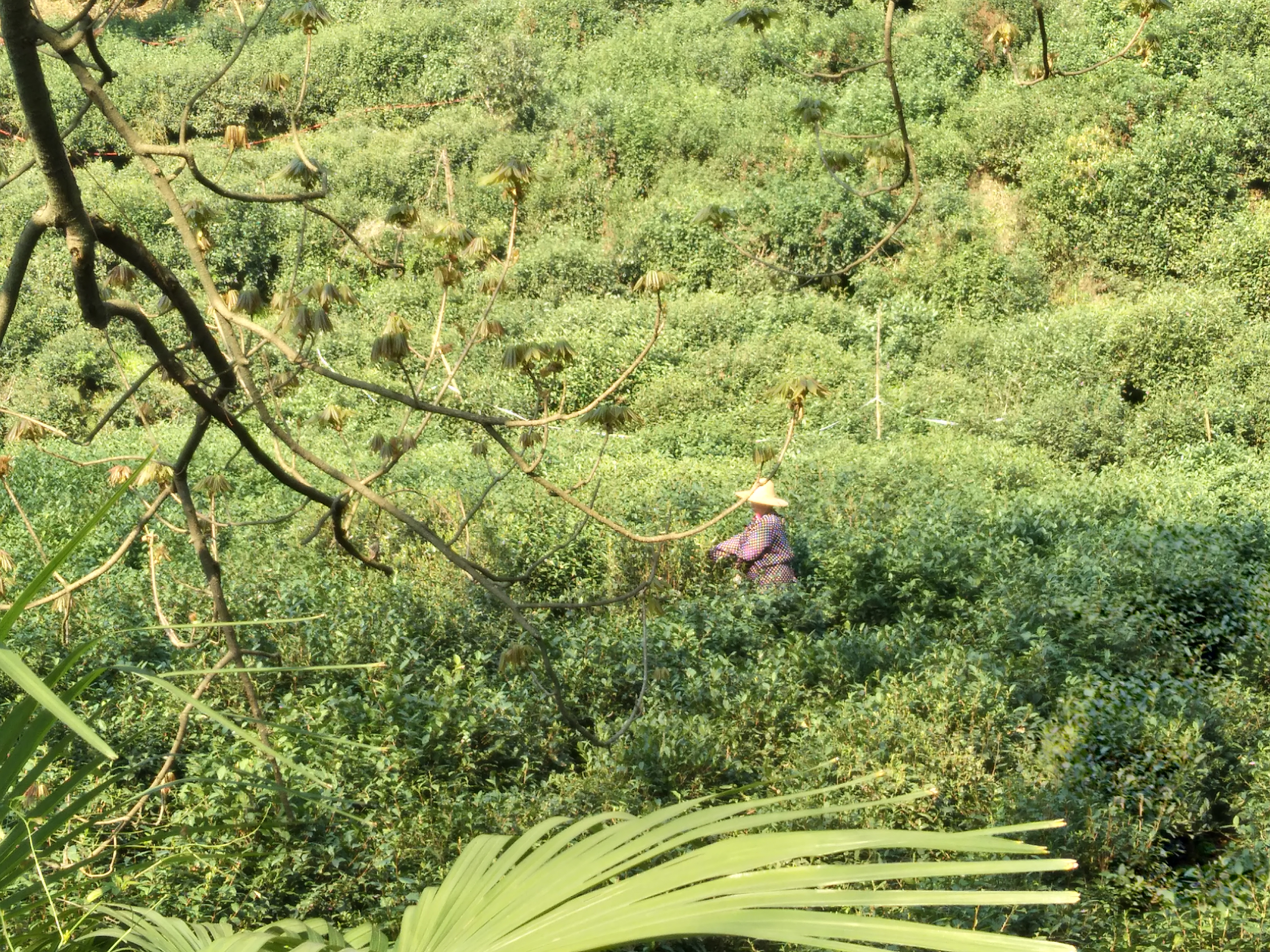 我们走在小路上可以看见茶农们在茶田里采茶,想必,受佛光庇护的龙井茶会更添芬香吧。