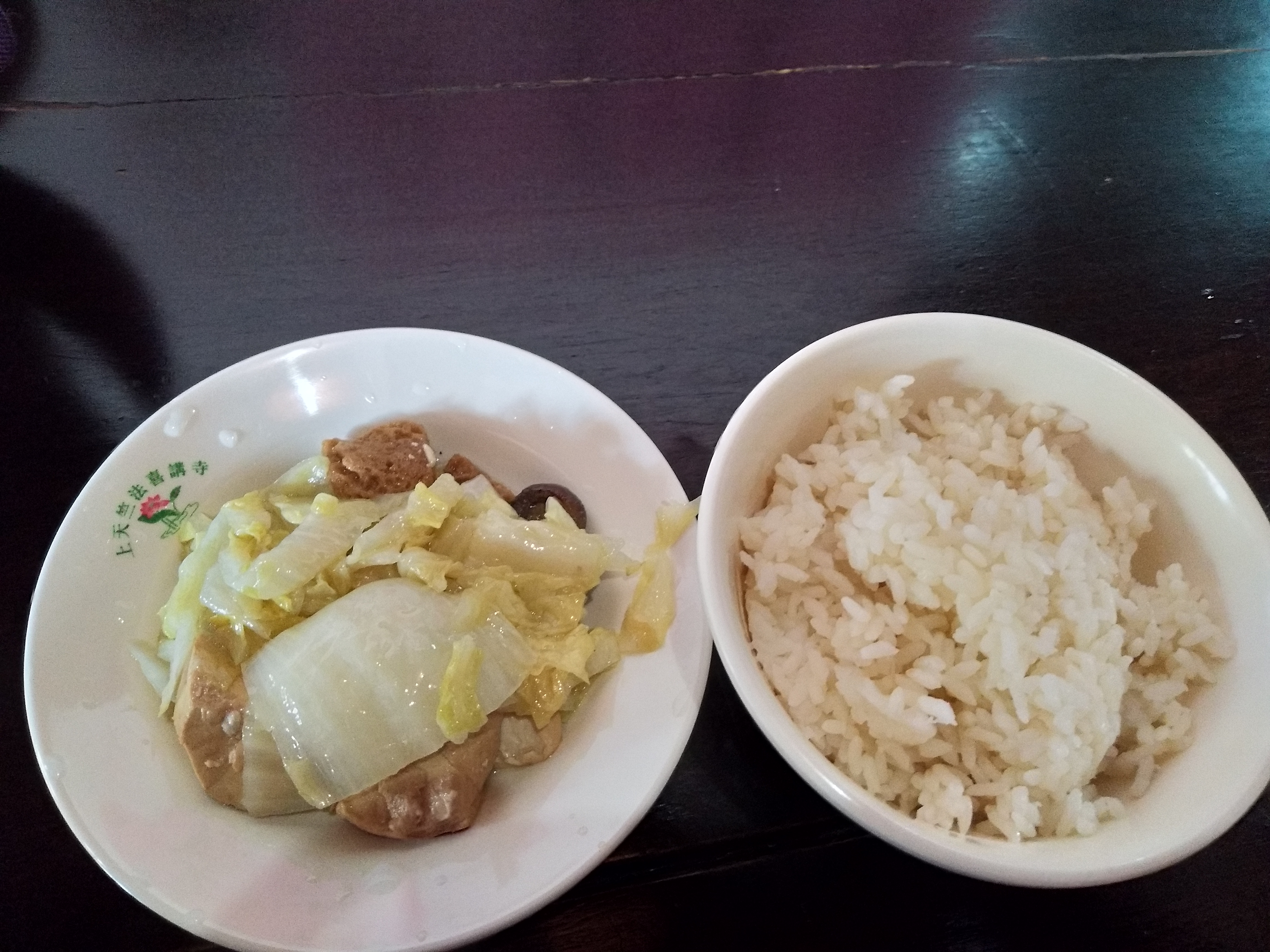 法喜寺里面的斋饭,五元一份,可以添饭添菜。虽然是全素,但是并不难吃,随行的几个人都添了好几次饭菜。有一点必须要注意的时,千万不能剩饭菜,饭堂里也有很多标语来提醒大家。