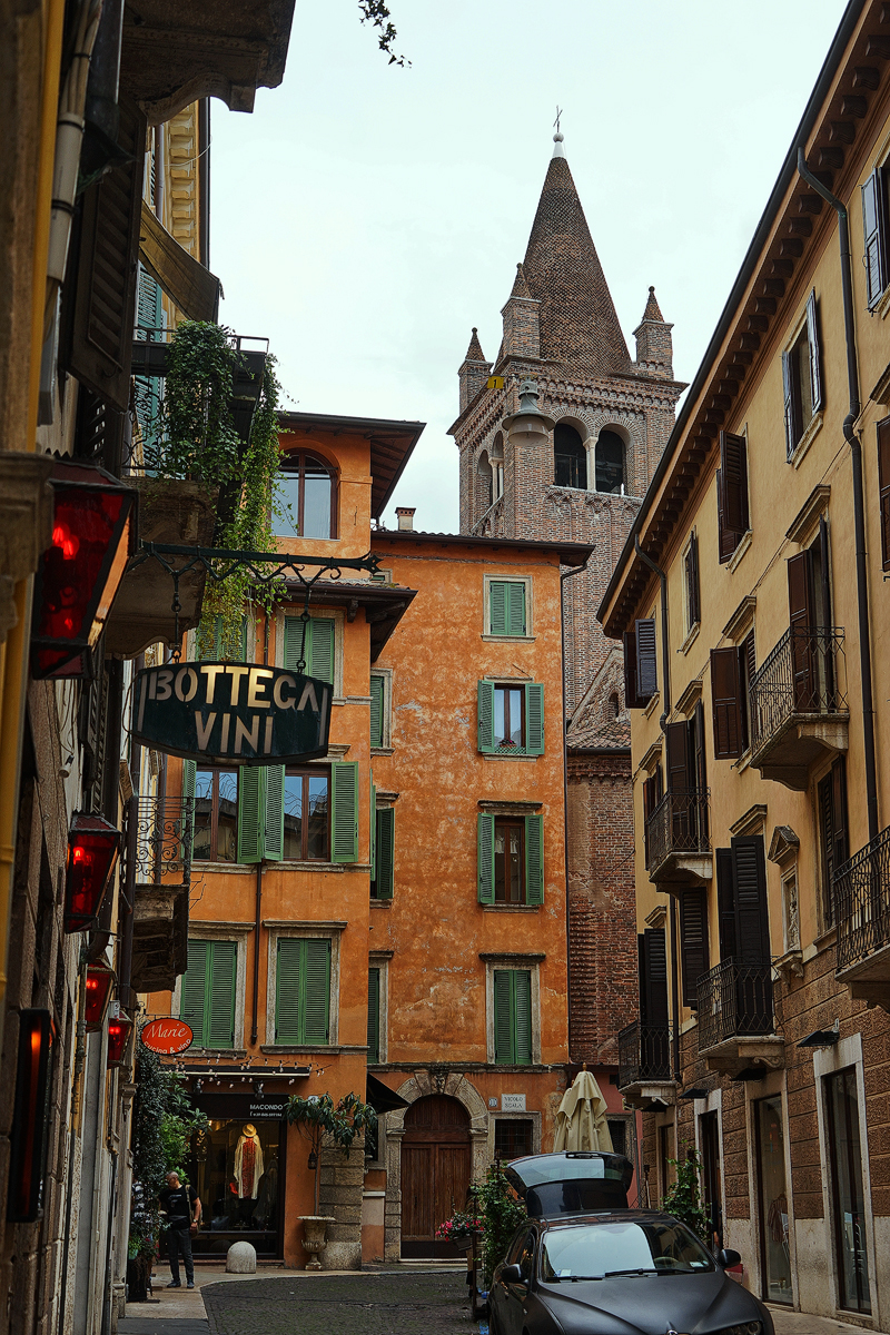 正值广场市集,人群热闹,游客们在各个小巷各种小摊间逛着。眼里也充满了兴奋与好奇的眼神。两边的房子和阳台上的植物,充满了生活气息,可爱的 维罗纳 小城。