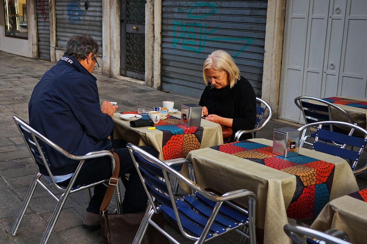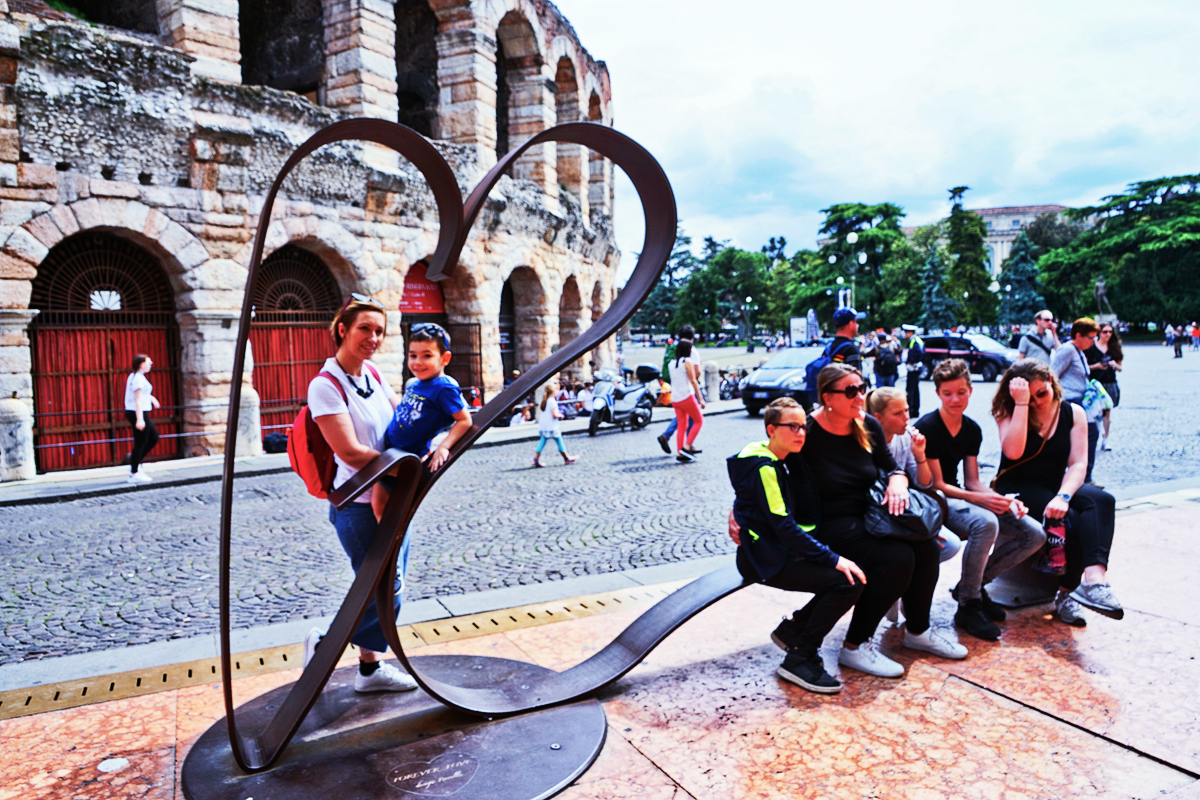 维罗纳 ,仿佛空气都是宁静而浪漫的。漫步在居民区的街道上,作为一名游客好奇的眼神,我们看见街区的各个角落,都有精致的花店和咖啡馆,古老而活泼。这是老L在向喝咖啡的热心女士问路。