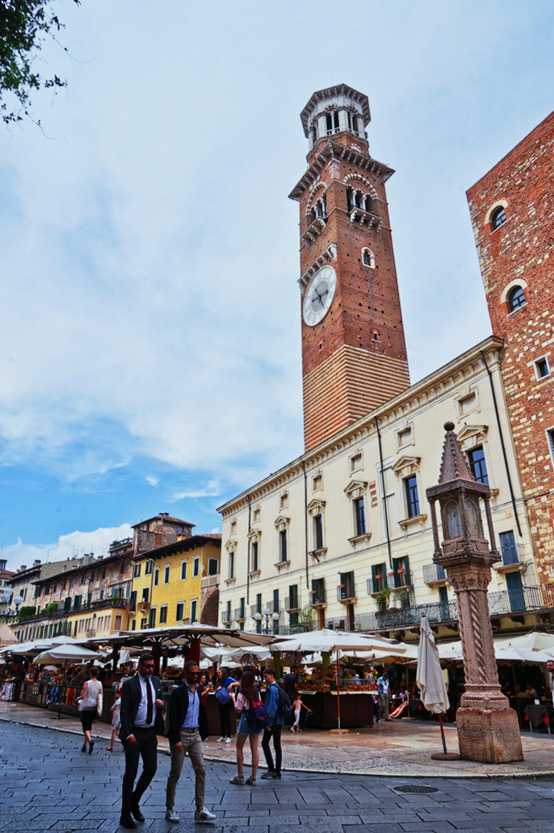 离开朱丽叶故居,我们又继续前往百草广场。 维罗纳 最著名的香草广场,据说在 罗马 时代是市民进行仲裁、政治集会的公共场所。广场上有很多非常美的老建筑,朗贝尔蒂钟楼、 马赛 宫、马赞提宫、商人之家、圣母喷泉等,广场上是铺满了摊子的集市,热闹非凡。天气好的日子,在广场一角点杯咖啡,喝个下午茶,放慢脚步,会慢慢发现小城的美好。