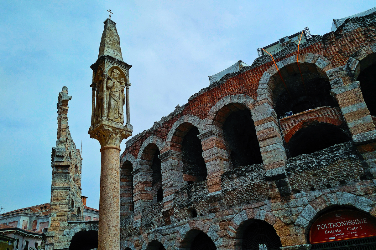 布拉广场,最引人注目的就是雄伟壮观的 维罗纳 竞技场(Arena di Verona),这一奇特的建筑好象天外来客,无意中遗落在人间。它虽然与广场周围的环境不太协调,却以其不朽的历史毫无疑义地成为 维罗纳 市标志性建筑之一,可以说这个竞技场使 维罗纳 市名扬整个 欧洲 。