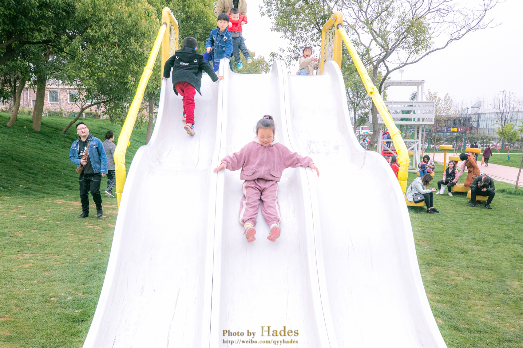 花博汇临着后官湖。湖畔有大片的沙滩,这里便是景区中的戛纳沙滩。戛纳沙滩是一处充满野趣和冒险精神的地方,尤其适合亲子一同体验。走出弗洛伊鲜花小镇,远远便能望见这片欢乐的世界。虽然没孩子,凑不够亲子,但也不耽误我们冒充良小,混入孩儿群!