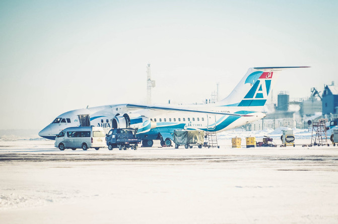 依然是龟裂的地面,依然是破旧的机场,依然是各种苏联时期的老旧飞机混杂着波音空客和安东诺夫的新喷气机,航空迷们估计喜欢这里,因为你能在这里看到CRJ-200,爷爷辈的安-12,军用型号的伊尔-76,甚至还有安-148……传说中的金正恩专机同款,少见的上单翼喷气式民航机。