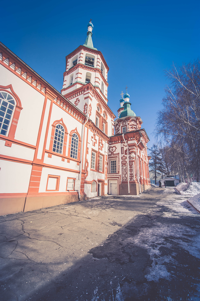 州政府大厦周围是伊尔库茨克景点最为集中的区域——大厦的对面是基洛夫广场,而在大厦的背后和侧面就是河边的教堂群,有着高高的尖顶的波兰天主教堂,白色的救世主教堂和紧邻安加拉河的主显教堂,时近黄昏,悠扬的圣歌轻轻回荡在天空中——除了波兰天主教堂外,其他教堂都可以入内参观。