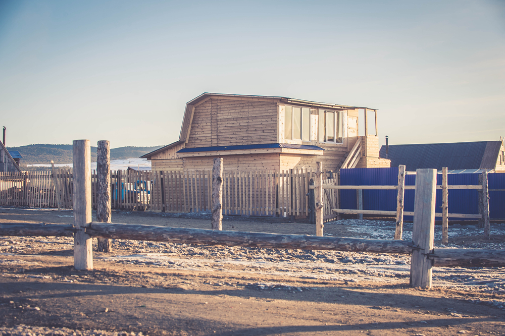 几乎全部由木头房子组成的胡日尔村当然没有原始到让你用石头驱赶狼群的地步,但我们在Nikita家门前下车的时候,迎接我们的是一头散漫淡定而且有些霸道的牛,然后就是Nikita家那几只挑食的狗。只有1000多人口的胡日尔村面积广大,村中道路有如十二车道一般宽阔,只是全都是土路。街上行人寥寥,不多的几个小商店货品也不太丰富,咖啡厅大多歇业关门——要在7、8月的夏天,才是贝加尔湖旅行的真正旺季。