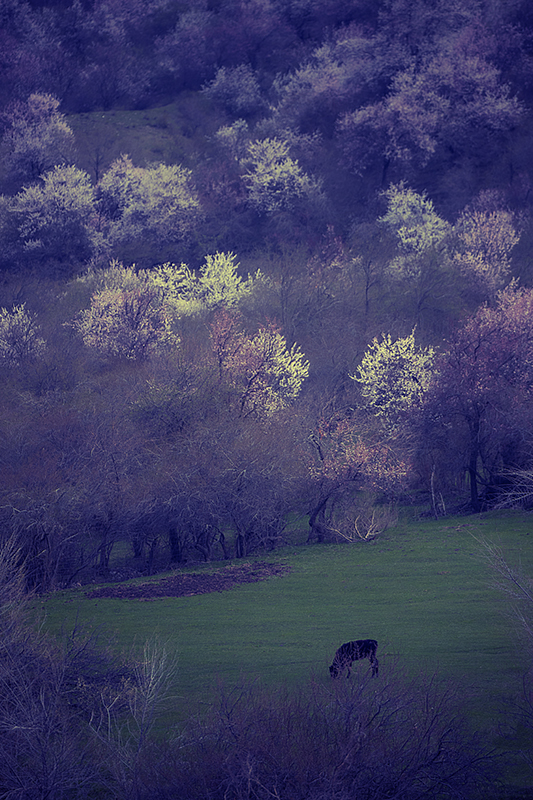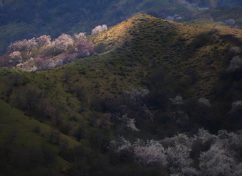 早春的新疆,总是离不开美丽的杏花,我们来到吐尔根、来到大西沟,吐尔根的杏花开的早些。漫山遍野的野杏花,争相开放,粉色缀枝,喜鹊缭绕,波浪起伏的山坡上,绿茵如毯,牛羊马群在山坡上悠闲自得。