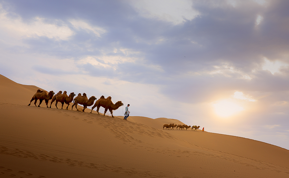 库木塔格沙漠,是世界上里城市最近的沙漠,沙漠就在城边。也是中国最美的羽状沙漠。我们乘坐沙漠越野车,驰骋在广袤的沙漠里,驼队、美女一览无余。