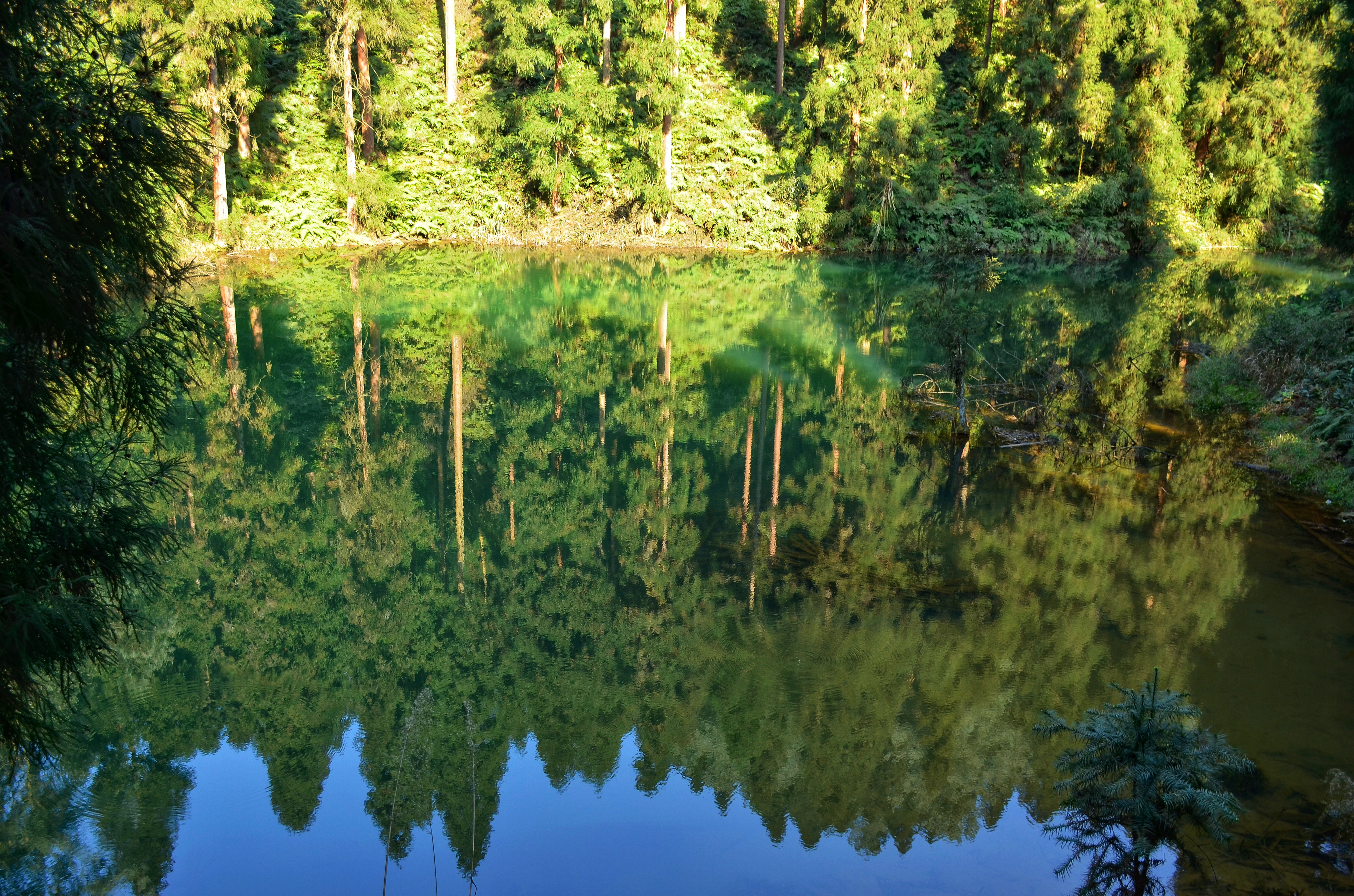 湖水清亮,绿树倒影,仿佛行走在小九寨