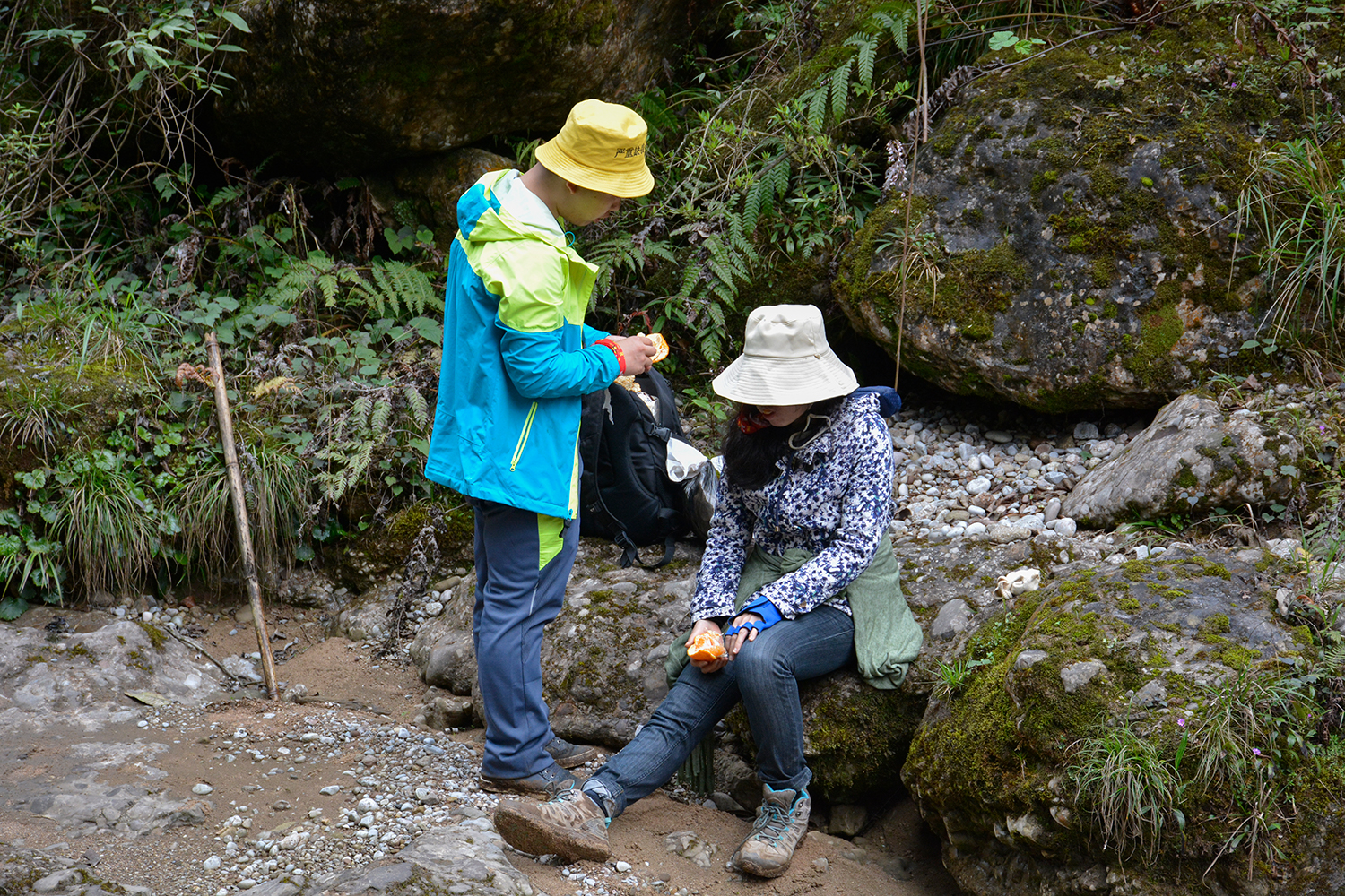 我们一行人小心翼翼地穿越着箭竹林,在耗费了近半个小时,才艰难地抵达了一处较为开阔的石滩。