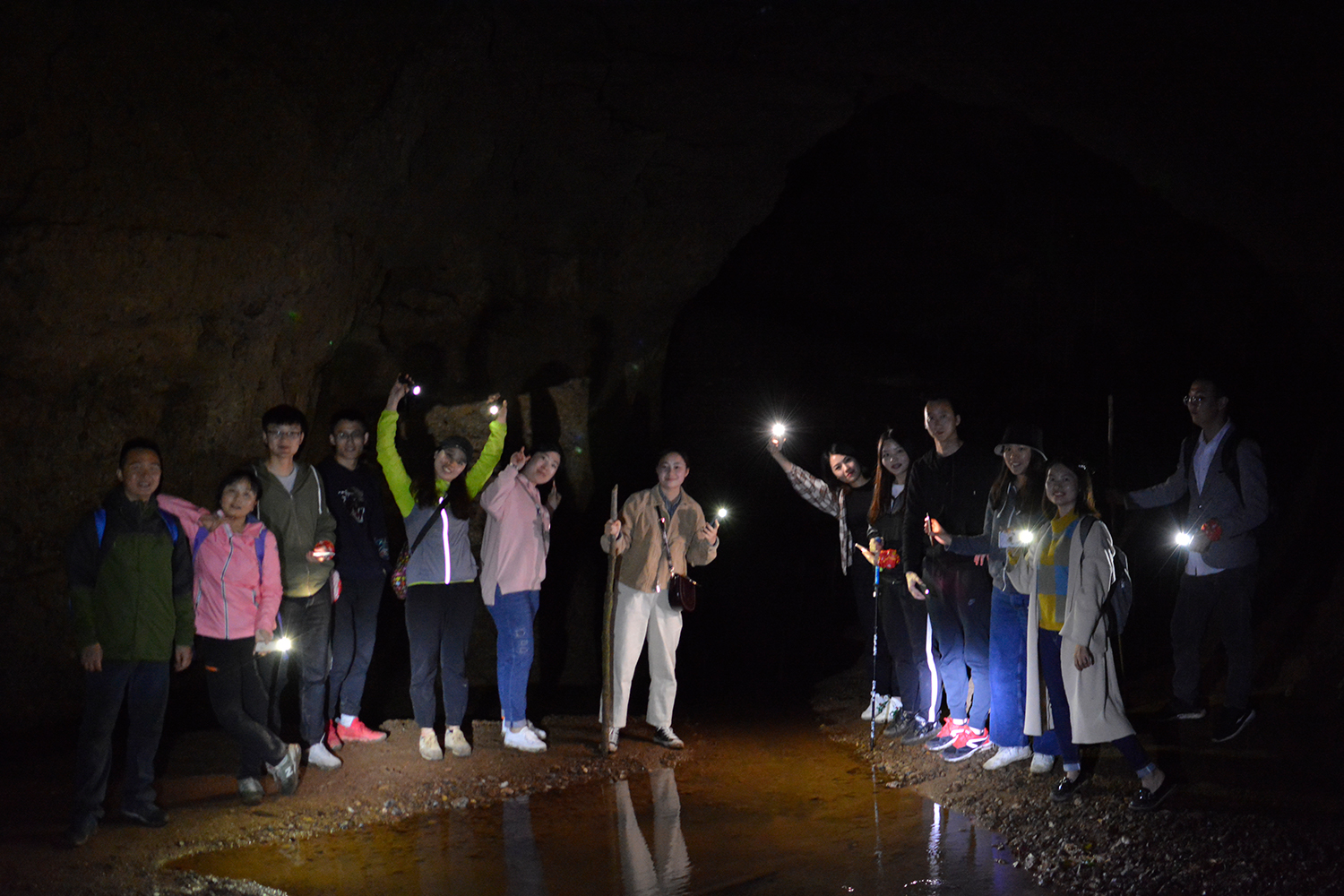 虽然在洞内,我并未亲眼看见所谓的特殊物种“盲虾”。但和大家能在此留下一张如此珍贵且特别的合影,还是觉得很有意义。