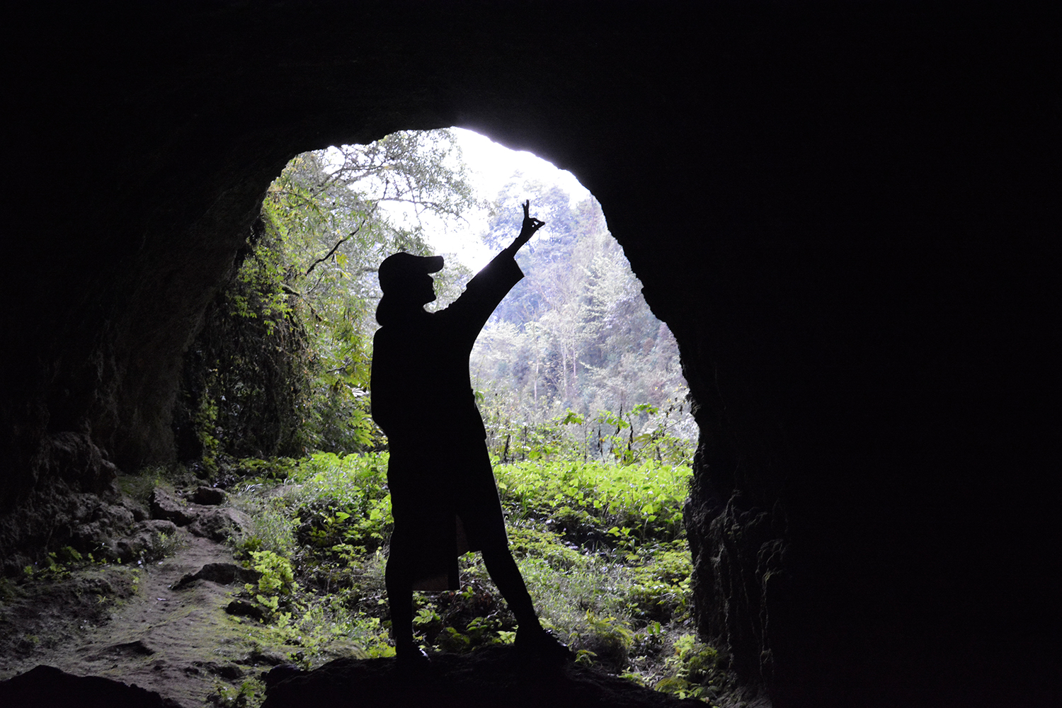 城门洞是一个尚未开发的山洞,洞内没有丝毫的光,所以只能凭借外置光源来照亮前行的路。