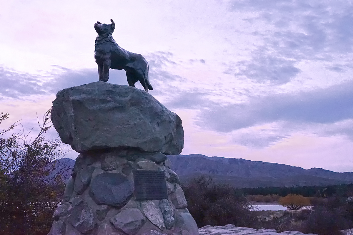 教堂旁不远处高高矗立着一座牧羊犬青铜雕像,像座上刻有“没有牧羊犬的帮助,就不可能在此处山野放牧”等字样。显然这座铜像的设立是纪念牧羊犬为保护羊群所做的贡献。牧羊犬的铜像立在这座教堂旁,不禁让人产生一个联想,它就是专门为了协助“好牧羊人”的。