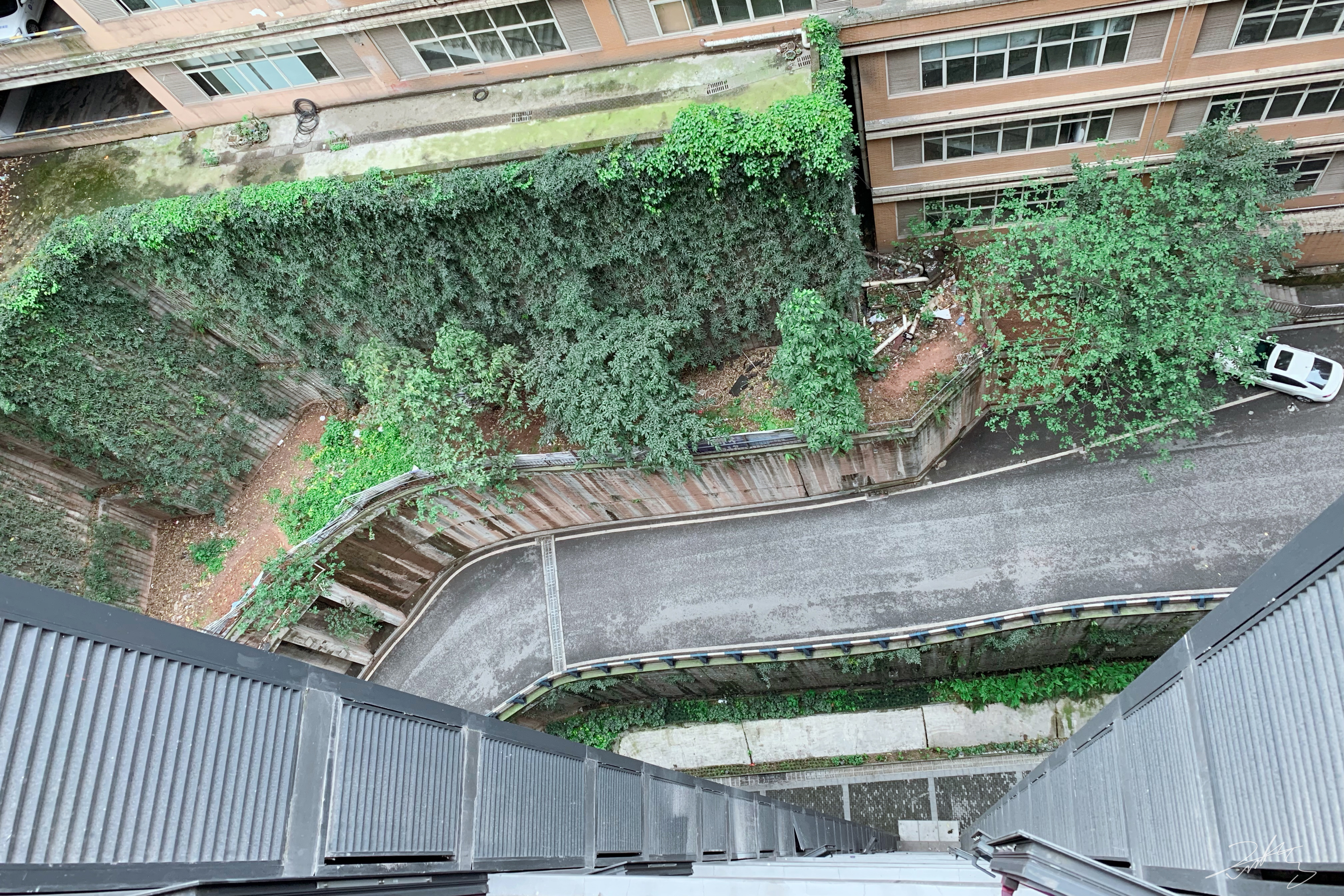 推开窗,抬头,看到对面建筑的一楼,低头,又看到下面建筑的一楼,你以为我在1楼,其实我在20楼,你以为我在20楼,不,其实我在1楼。