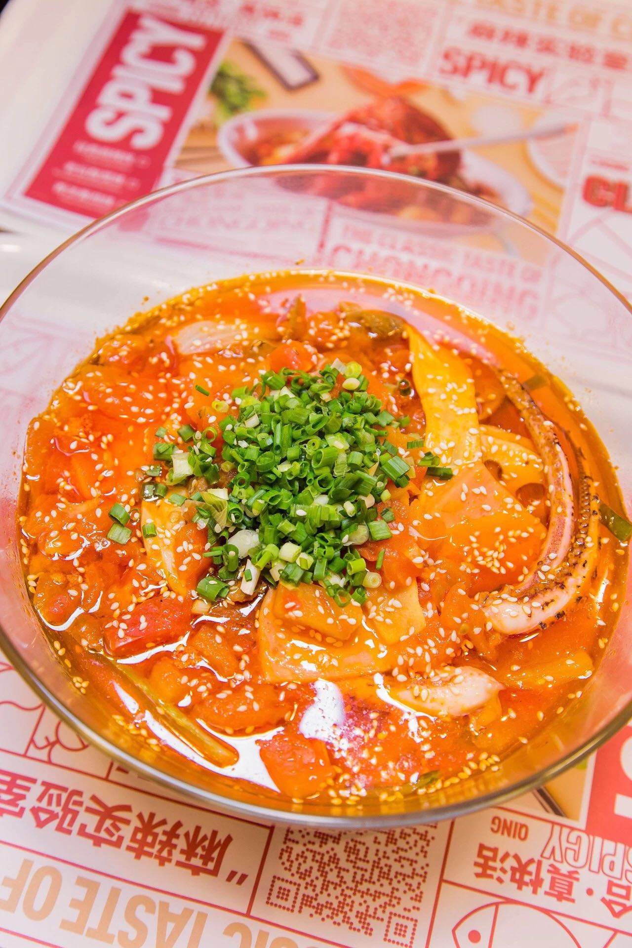 他们家的口味有四种,经典麻辣味、老坛酸菜味、香浓番茄味、南洋咖喱味,我点的是经典麻辣味,并强迫鹏哥点了份老坛酸菜味,味道比我想象的好多了。这得亏是在重庆,我才敢尝试老坛酸菜的,那种酸酸辣辣的感觉,层层递进,辣味会略重一点,但一点也会盖不住酸菜的味道,好像老坛口味的吃起来菜品更鲜!