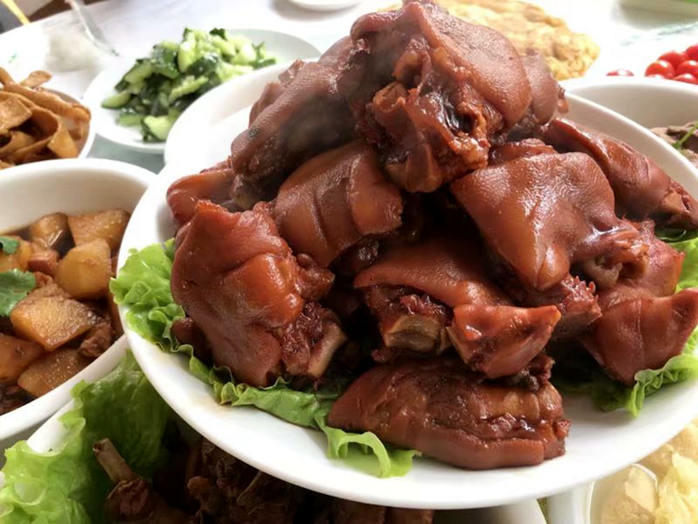 8点地铁雍和宫站集合,堵车的情况下大约11点到达长峪城村,拍集体照后去品尝猪蹄宴。满满的胶原蛋白有木有?车上一直有游客心心念念的总问什么时候能吃到猪蹄啊?现在是时候了,猪蹄管饱,不够您说话。吃完猪蹄宴,恢复能量。开始往长峪城脚下前进。