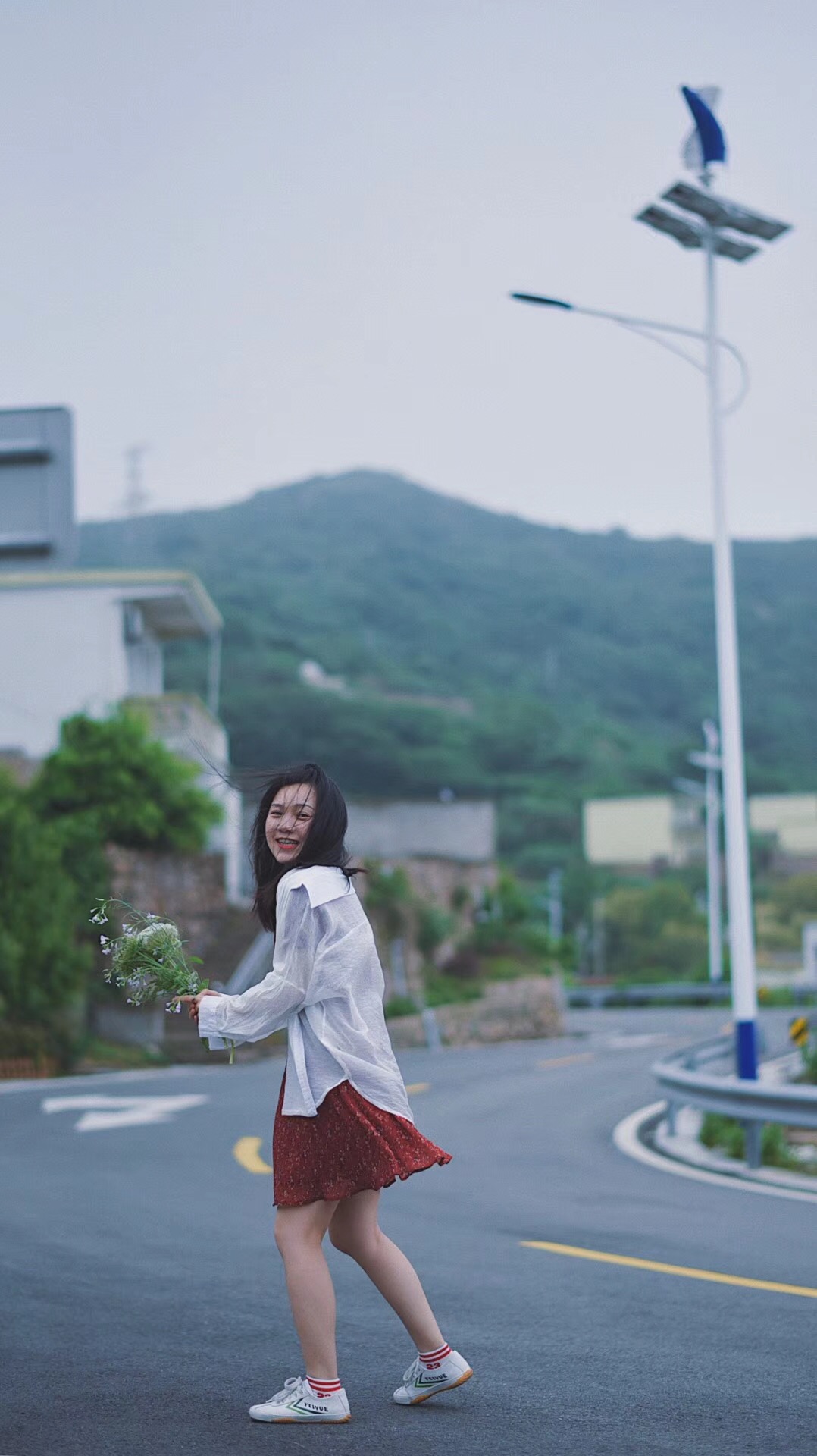 不管是往墙面随意一站,还是骑着车大笑而过,都定格成童话里最美的样子。