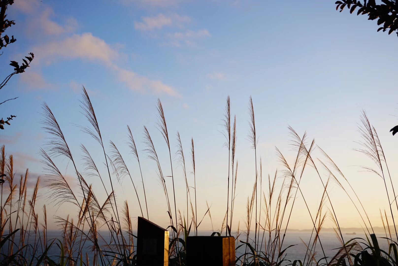 海边礁石坐一坐,咸咸的浪花珠子扑在脸上,温柔如水的渐变蓝天恰似垦丁。只不过垦丁在台湾最南,而这里在舟山群岛最东。
