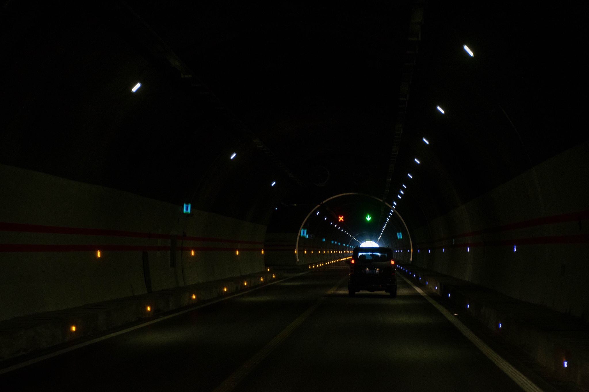 今天走的是新路,没有走老路沿着214国道翻越白马雪山垭口。途径5个隧道,在走出最长的一个隧道后可以隐约看到遥远的 梅里雪山 。