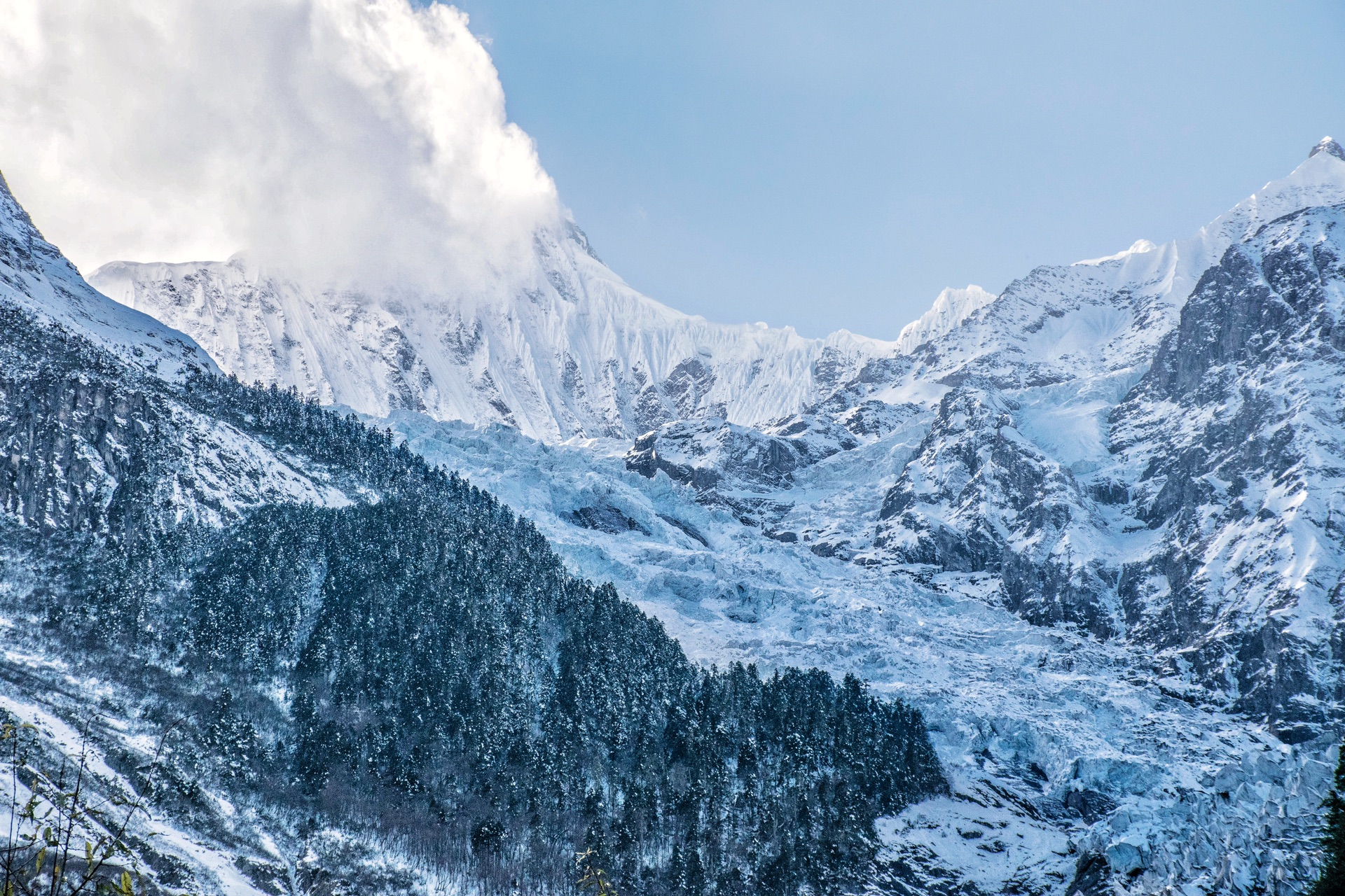 主峰卡瓦格博,金字塔般屹立于地表之上、蓝天之下。