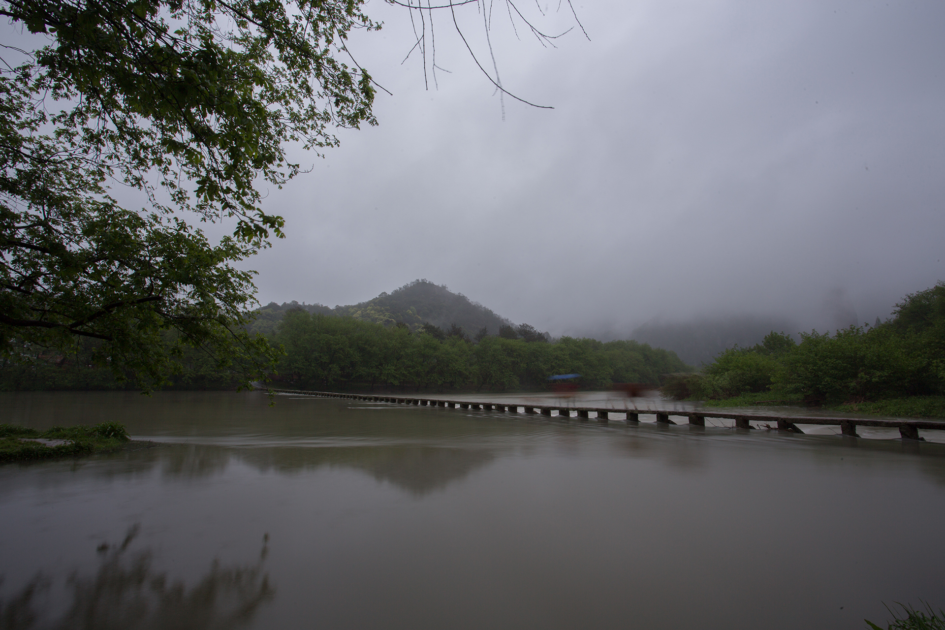 丽水大港头镇古堰画乡---对岸的堰头成片的樟树林和水上立交桥。