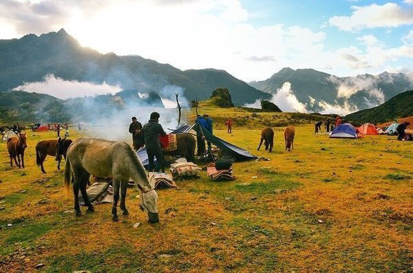 忽然从山头露出的太阳,刹那间,草地变得金黄,帐篷,衣物,马鞍,背包,一切有颜色的物体好像瞬间苏醒,变得如此饱满艳丽,只因为阳光普照,美到了极致,便是感动。