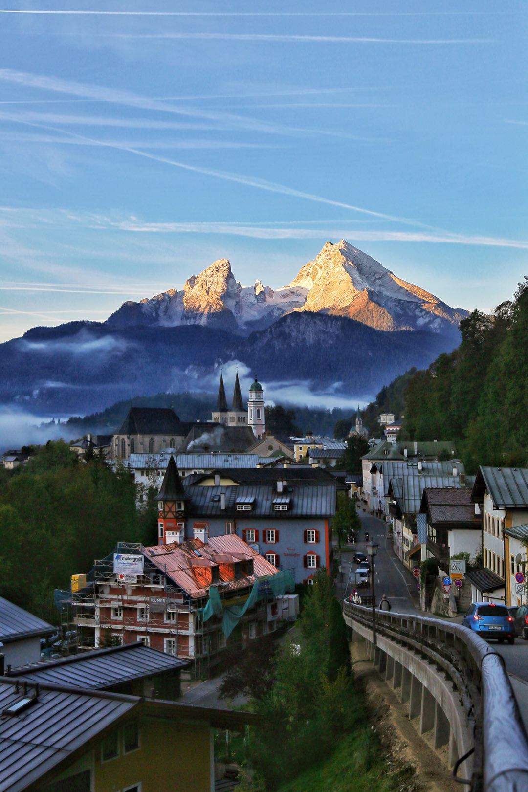德国边境的一个小镇,在镇上就能看见雪山,实名制羡慕这个镇上的人~