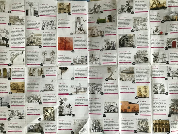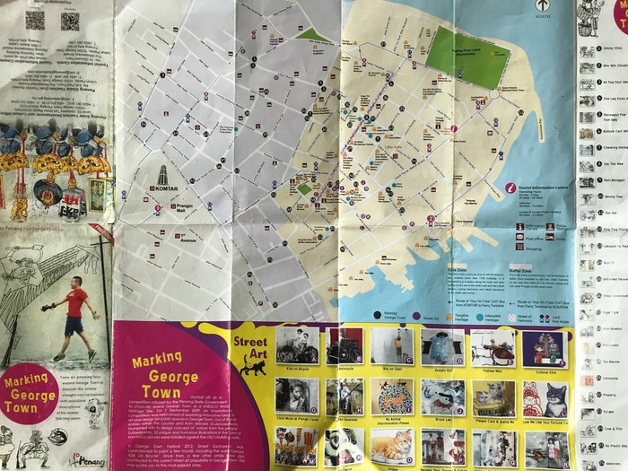 在乔治街上寻找大大小小的壁画应该是在槟城最不可错过的事情了吧,但是壁画分布较为分散,我是暴走下来的,感觉还是有很多壁画没有找到,建议可以包一辆车什么的,司机会比较清楚一些。这是民宿的老板给我的按图索骥图。。