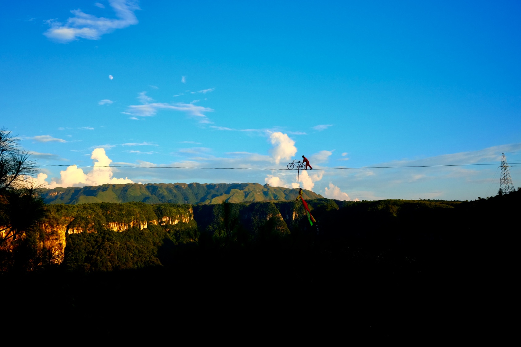 团里的五花肉走得最快,就是为了拍这个哈哈,高空钢丝表演