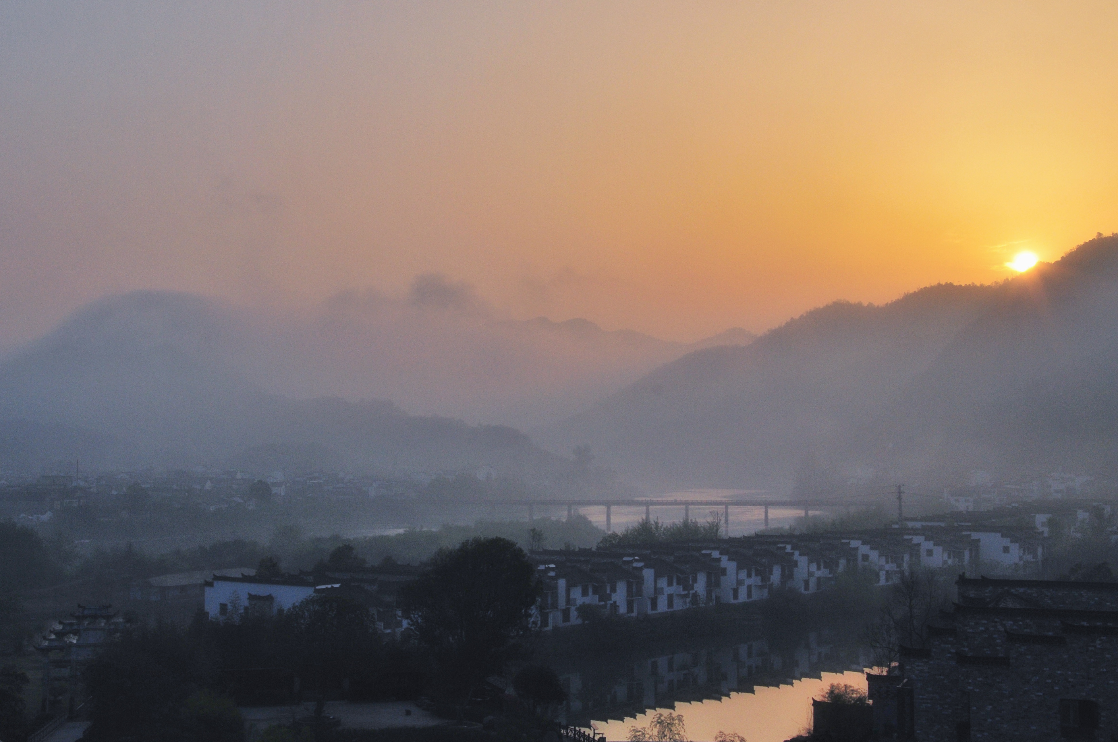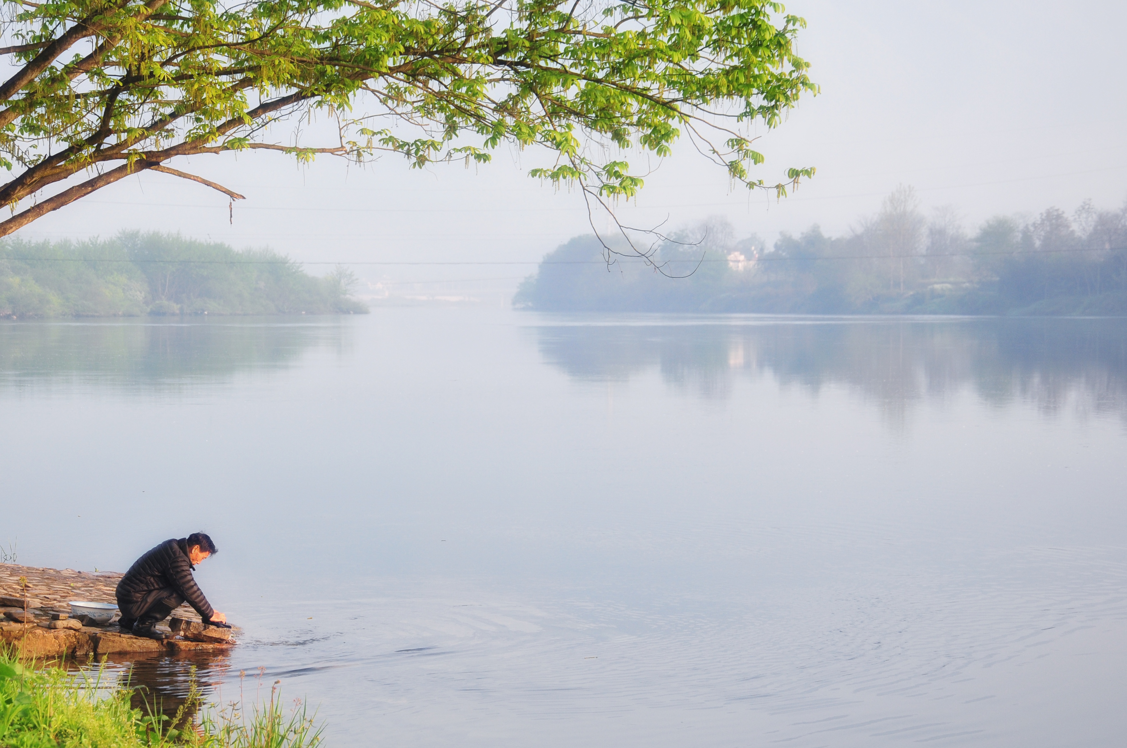 清晨,踏歌岸边。薄雾中的桃花潭,重峦叠嶂,远眺山在云中,若影若现;近闻桃花飘香,清静幽深,宛如仙境。登上怀仙亭,静静聆听,隐约有踏歌声声……