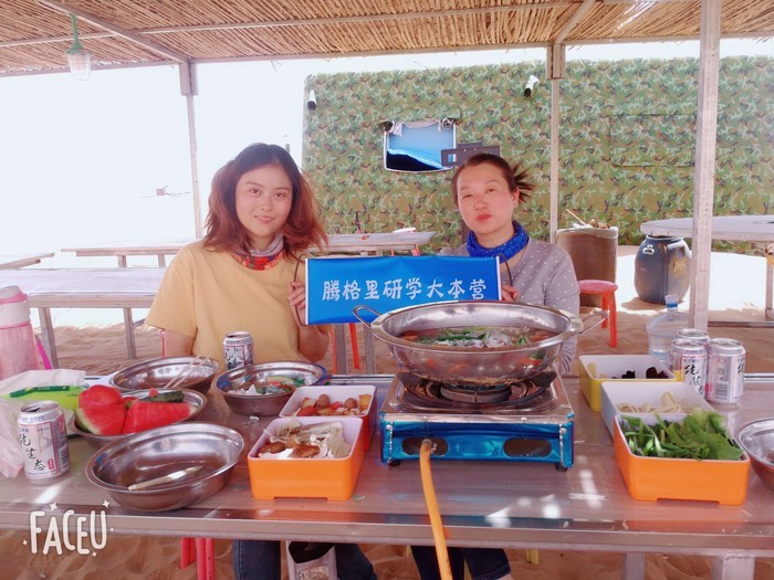 午餐也很有特色,在沙漠中吃火锅也是第一次体验,怎么说感觉还是很奇特的。虽不能与文人墨客流觞曲水的雅趣相媲美,但是也平添了不少豪迈之意。还有羊肉很鲜美哦!
