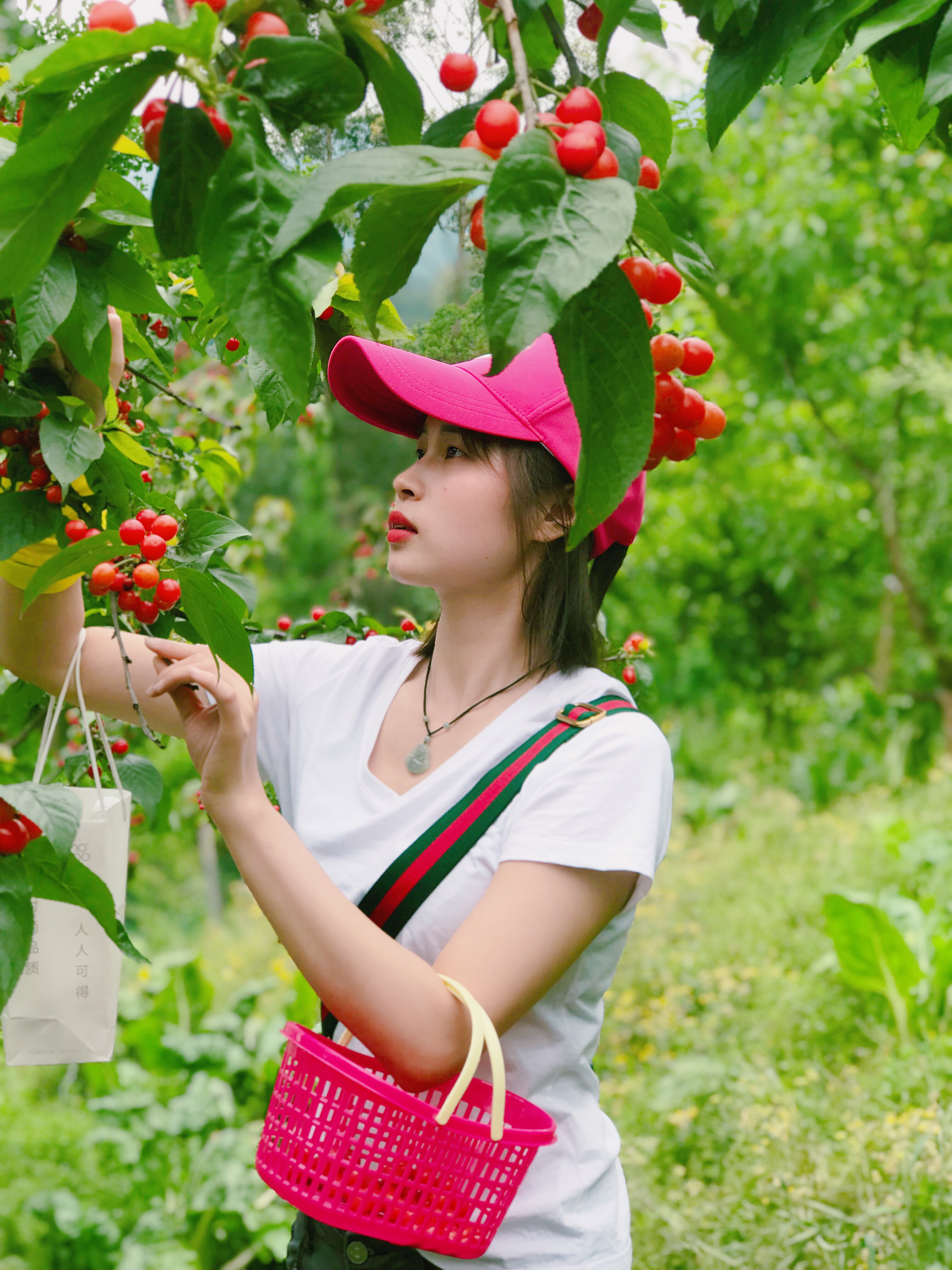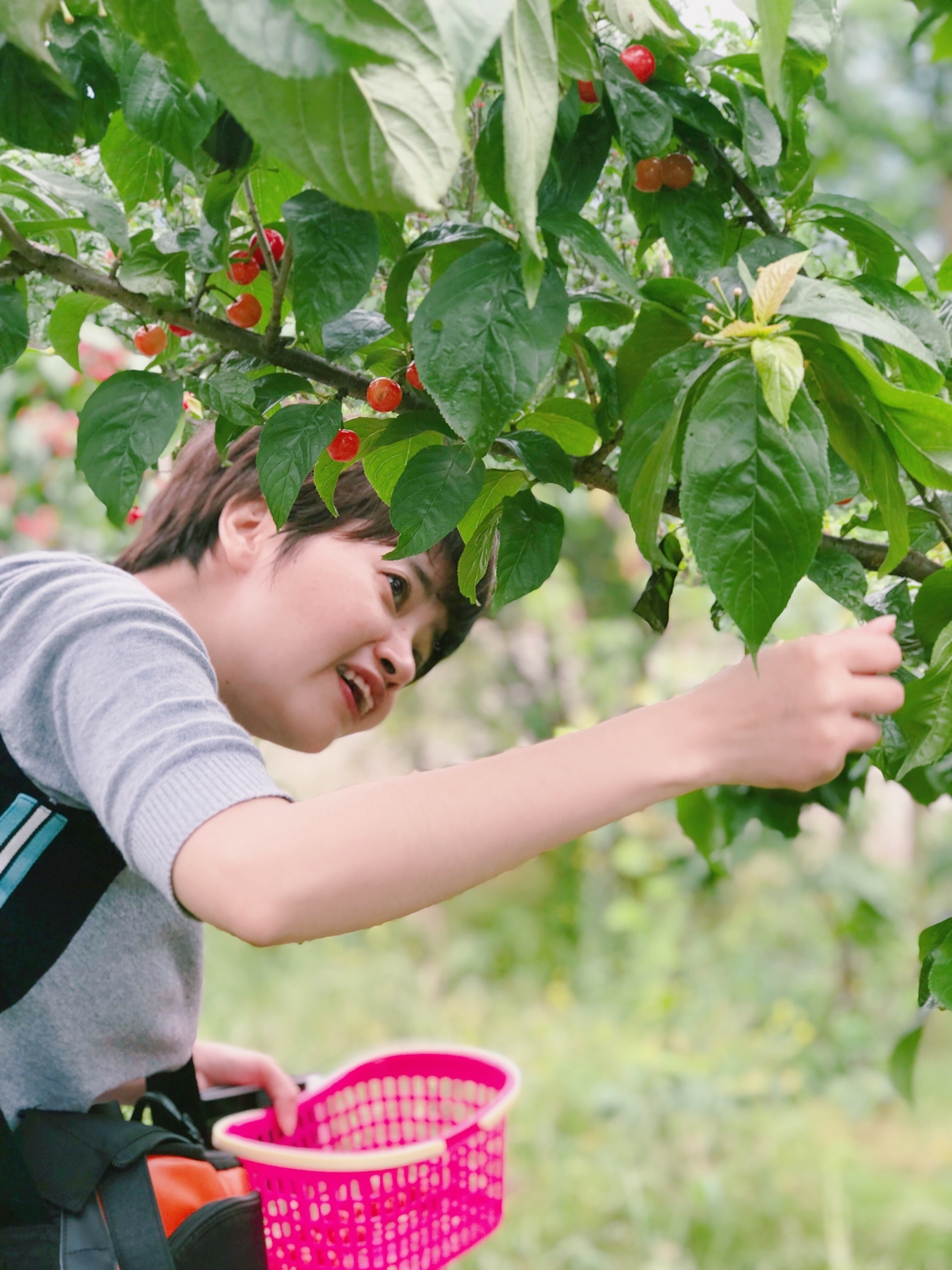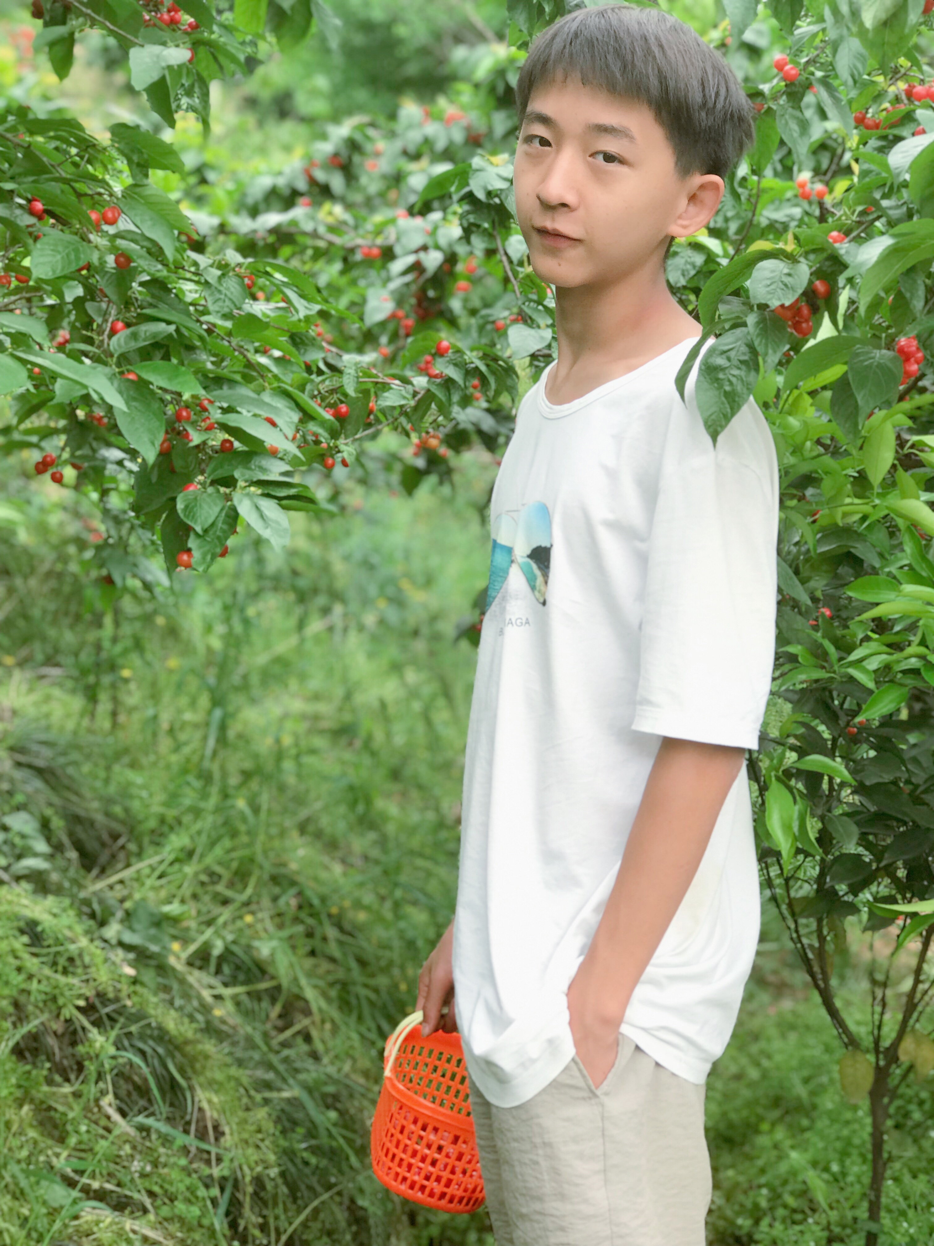 认真摘樱桃加摆拍的我