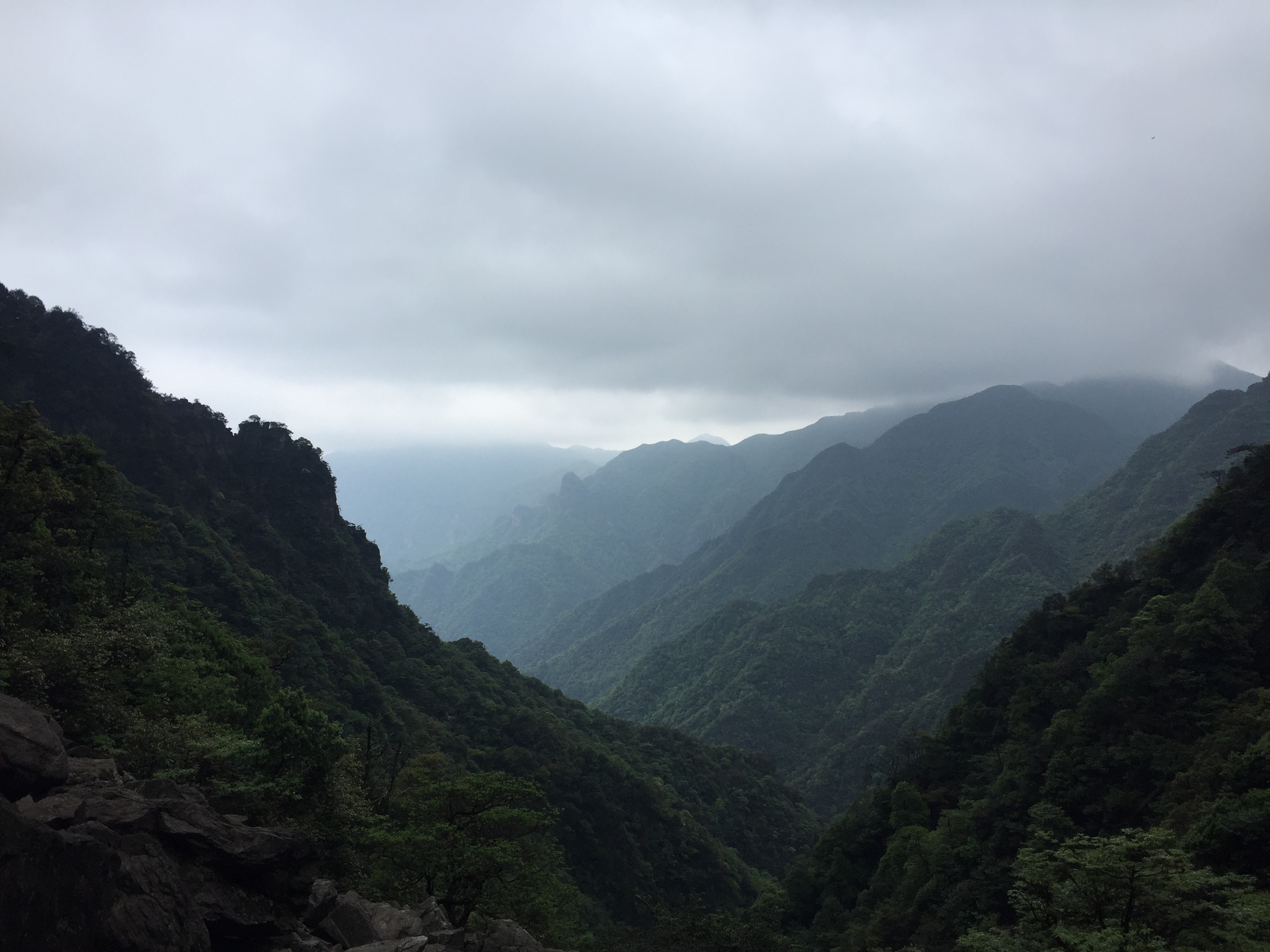 虽然没有日照,但是生紫烟我们是看到了。这不断从谷底上升的雨雾,飘飘渺渺的,这波不亏!