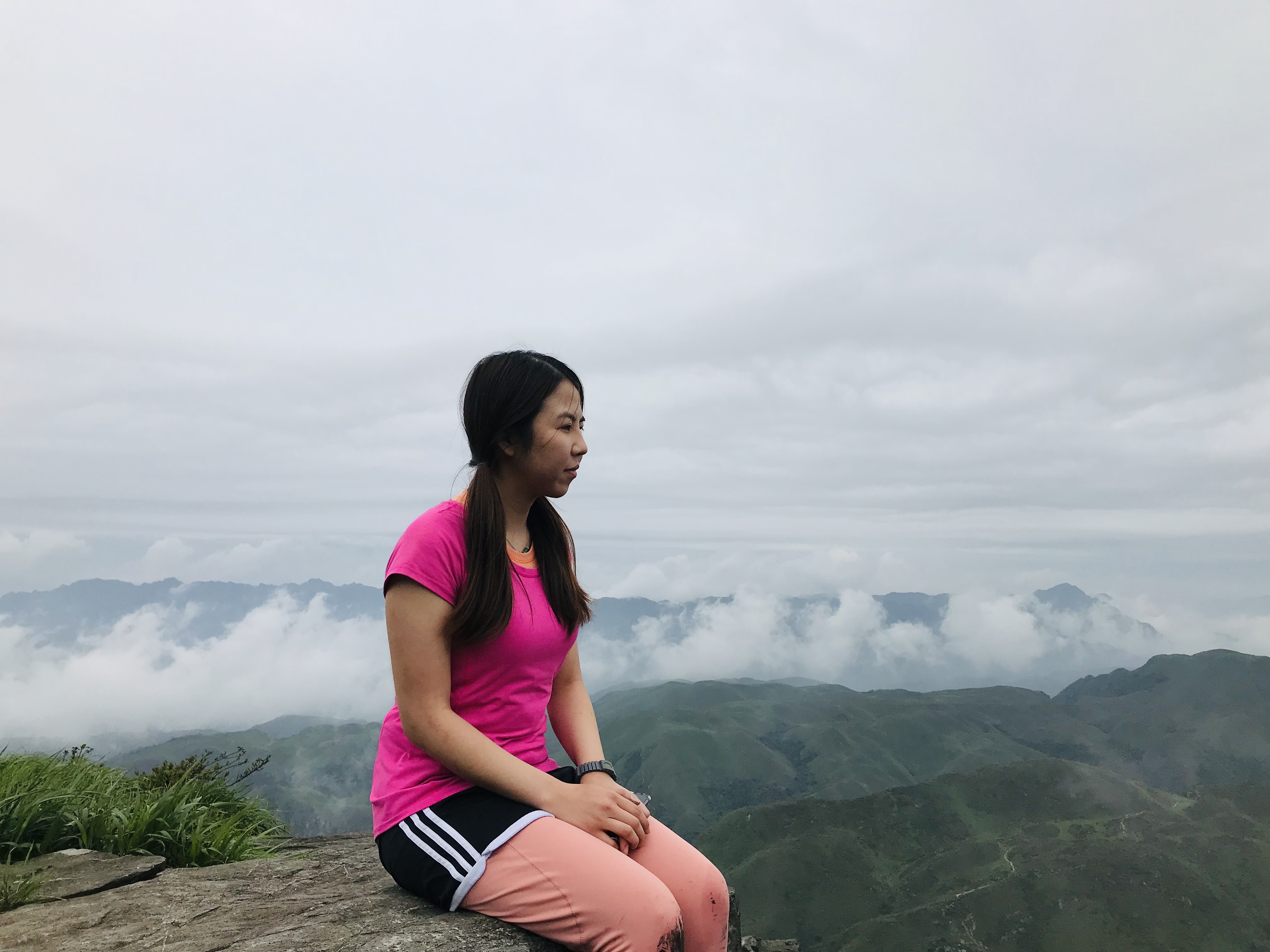 醒来,天气不算差。看到的山顶有雾,这种天气爬山是真的舒服。