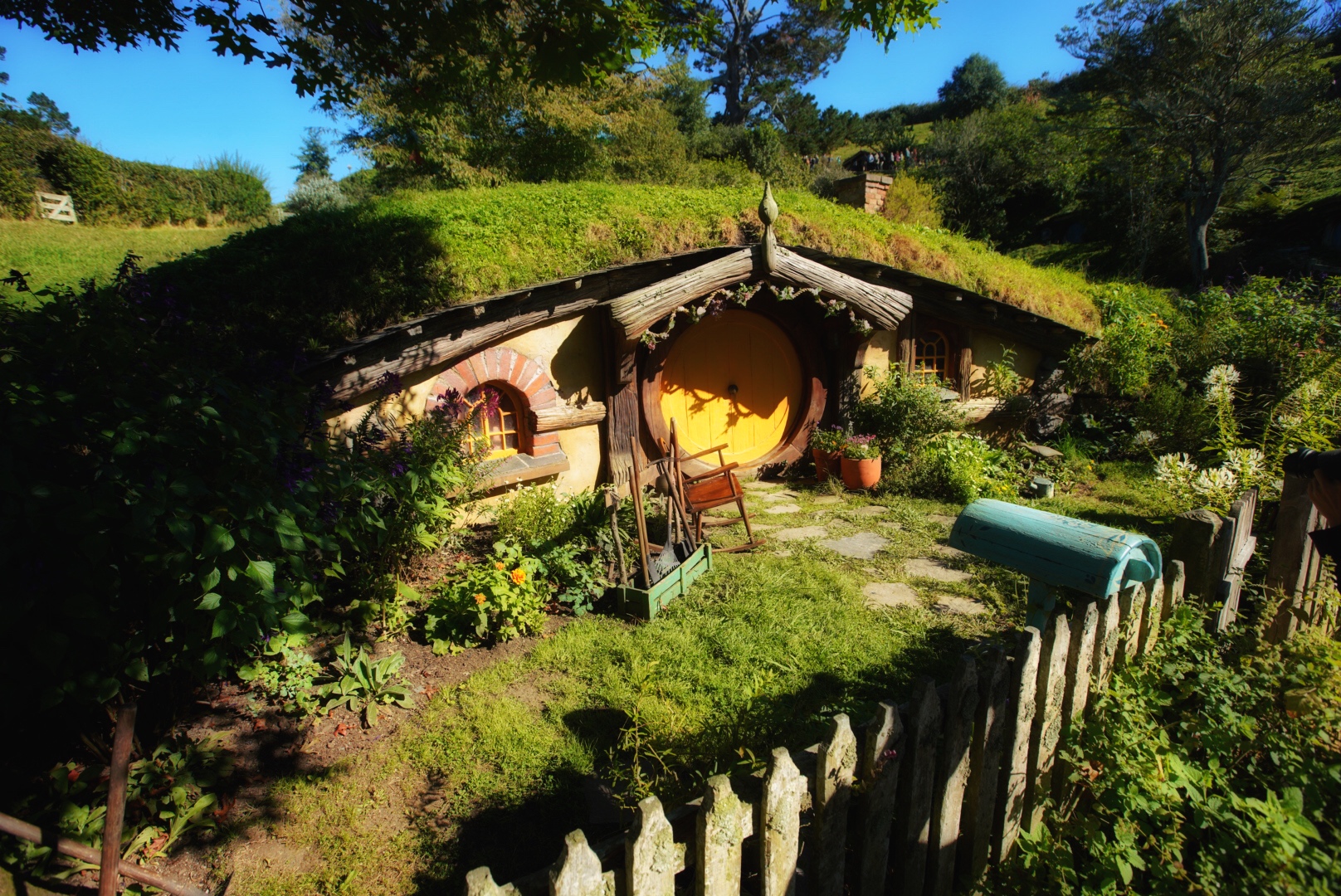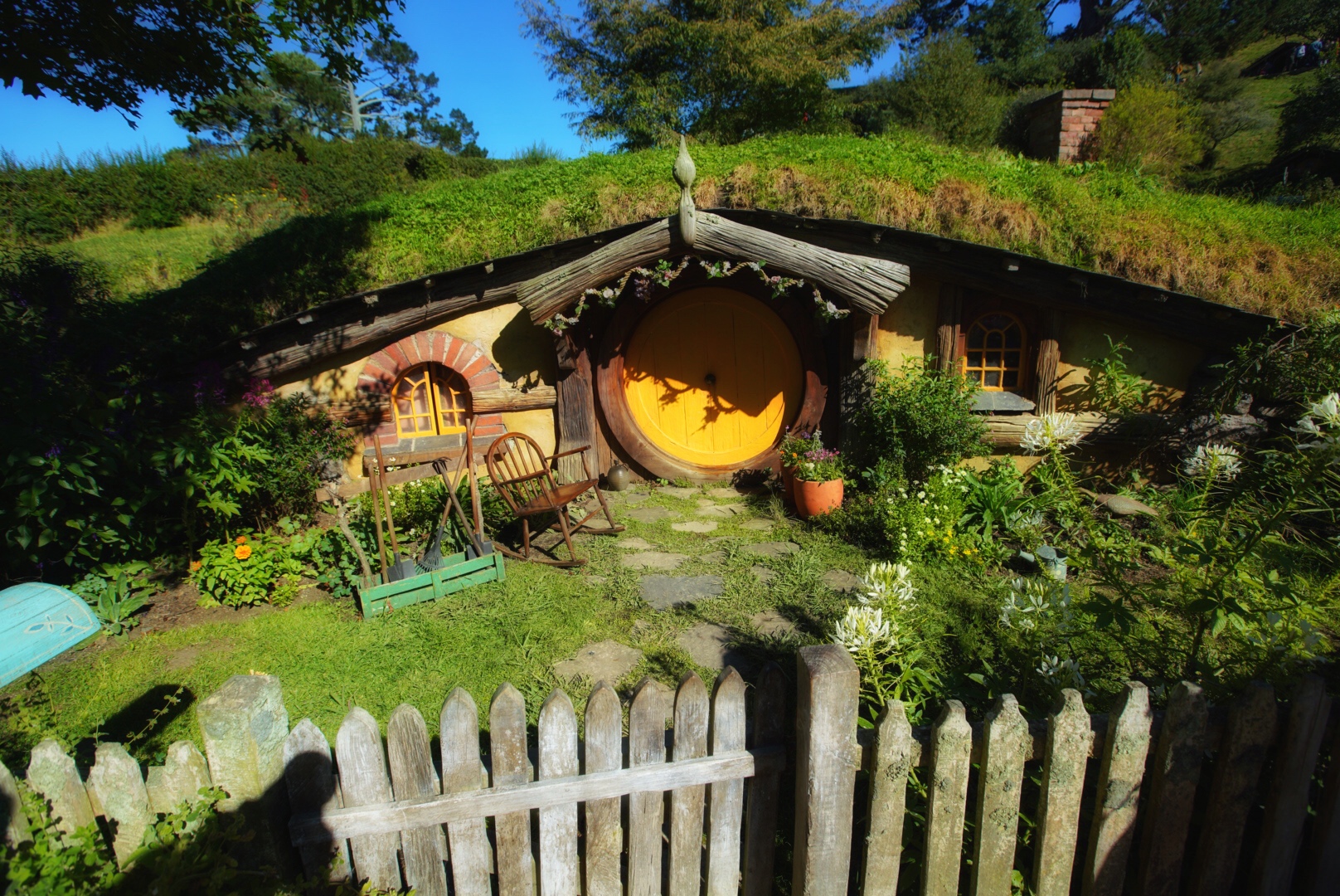 影片中霍比特人居住的世外桃源般的地方现实中是位于新西兰北岛怀卡托大区(Waikato)马塔马塔小镇(Matamata)的霍比屯。原本这是一个环境优美的小乡村,离奥克兰有两小时车程,是剧组为了重现夏尔村(Shire)历时9个月打造的。随着电影的大获成功,霍比屯也成为了来新西兰的必游景点,不管是不是魔戒影迷,都会被这个风景如画的农庄所深深吸引。现在,霍比屯每天都会迎来大批来自世界各地的游客,在这里游客可以在导游的带领下感受到中土世界的迷人魅力。霍比屯有44个霍比特人洞穴,一周七天都开放,向导每15分钟便可以带领一组游客前往洞穴参观,最后在绿龙酒吧里喝上一杯,重现电影里的经典场景。