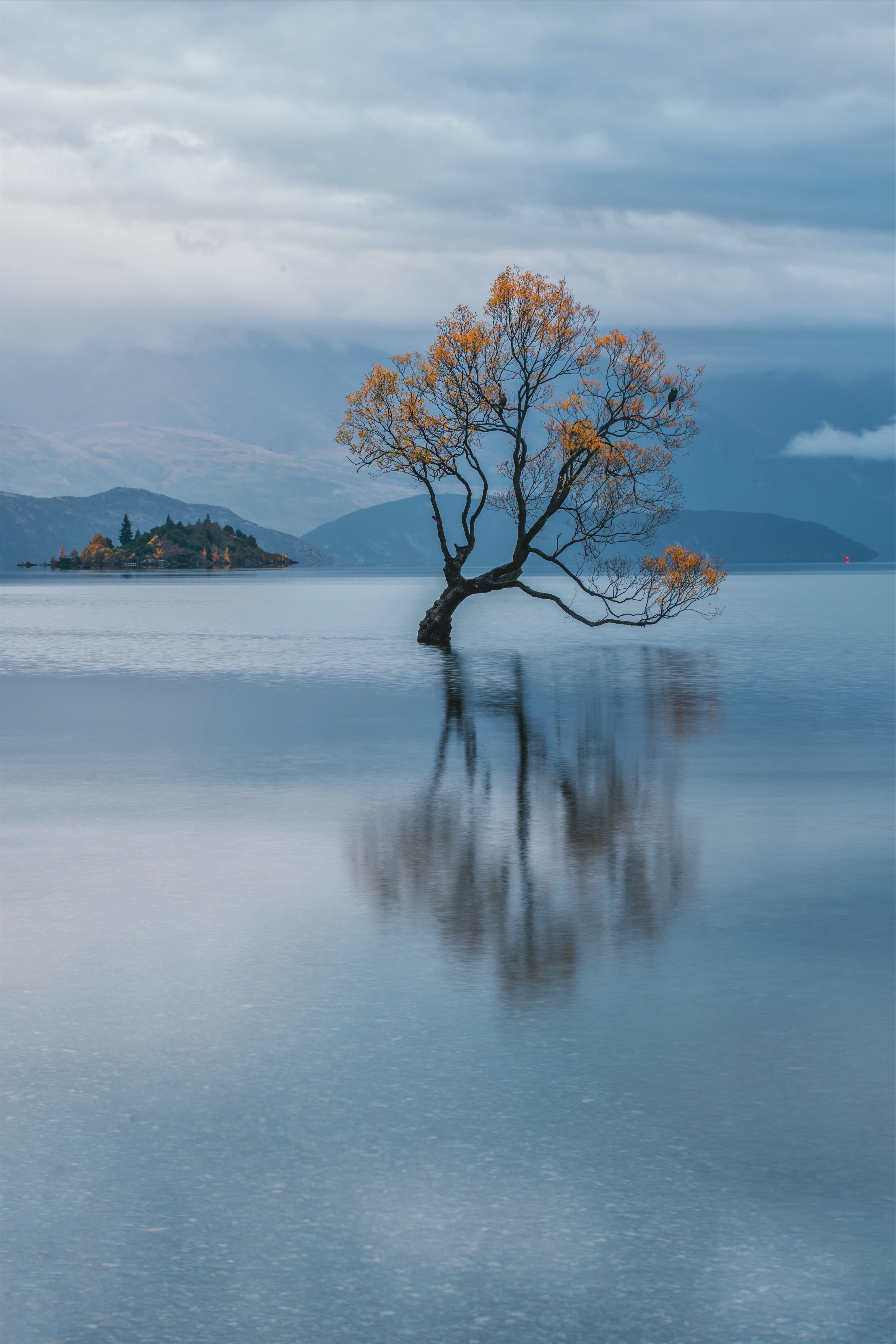 在新西兰,你可以不看任何树,但这棵树一定不能错过,那就是在瓦纳卡湖畔但孤独之树。但其实孤独之树并不孤独,因为每天都有很多人去看它。去这儿拍摄需要一点运气,无风最佳,微风尚可,一旦遇大风,倒影将无法呈现。我们去的时候正好是雨后,远山还有淡淡但晨雾,煞是好看。